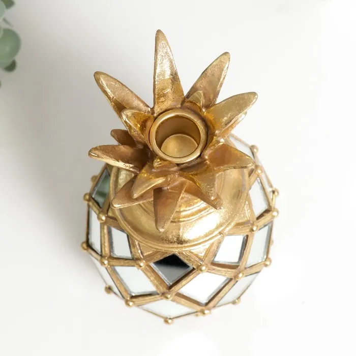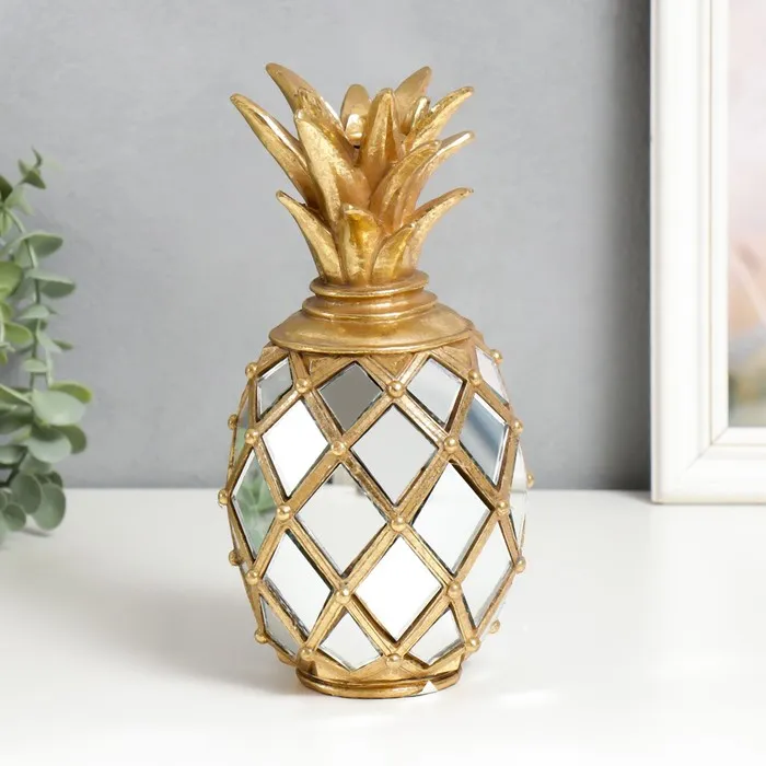 Фигурка подсвечник на 1 свечу «Зеркальный ананас», полистоун, золото, 23.5×11×11 см — Характеристики