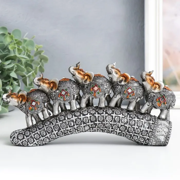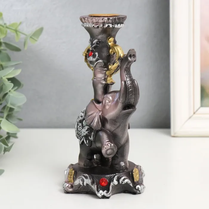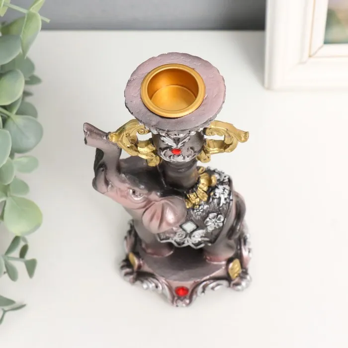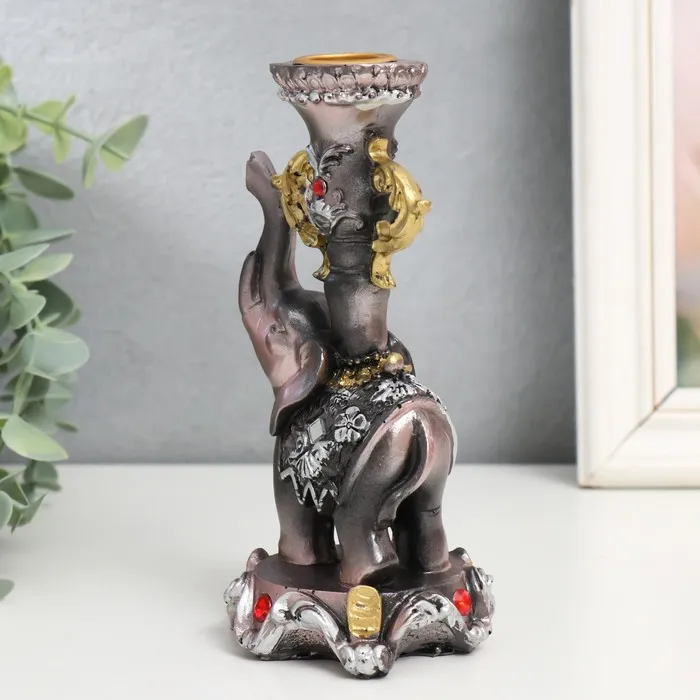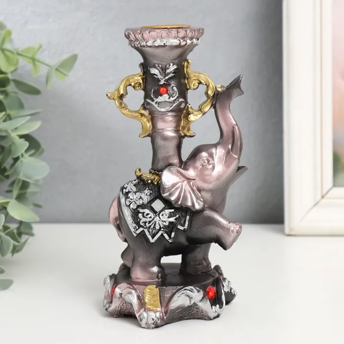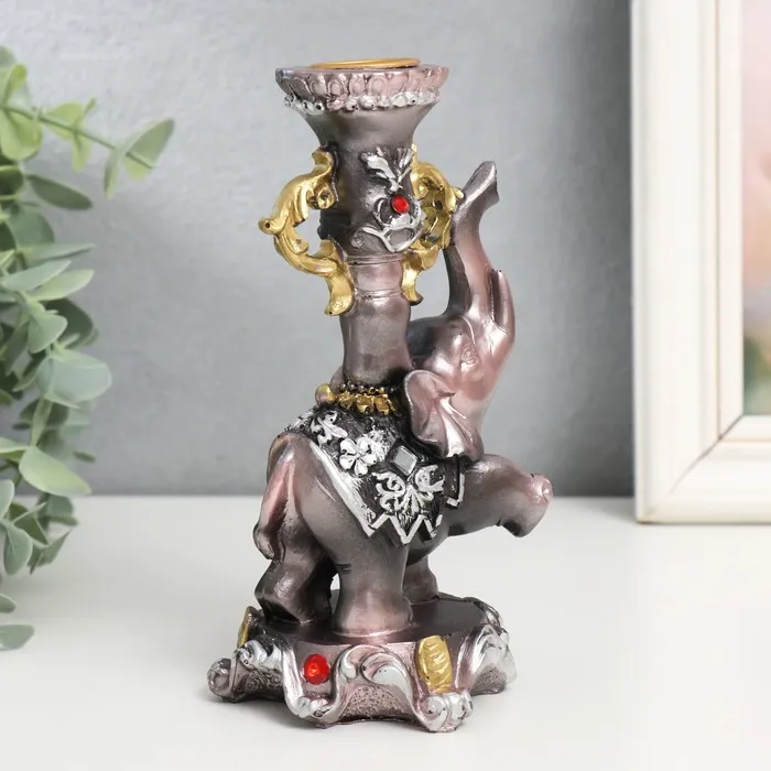 Фигурка-подсвечник полистоун «Слон на пьедестале в попоне с цветами», 15.5×8×7.5 см — Характеристики