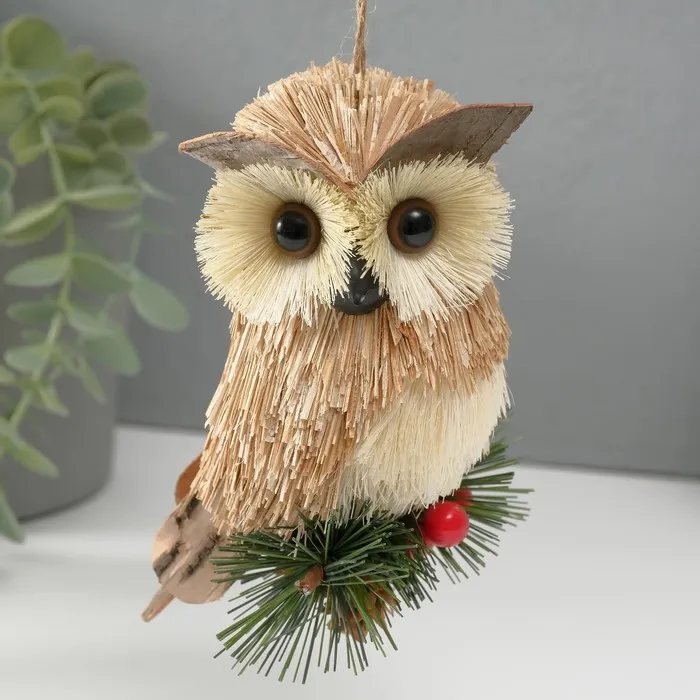 Фигурка-подвеска «Филин на ёлочной ветке», ёлочная игрушка, 9.5×7.5×13 см