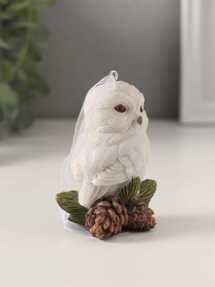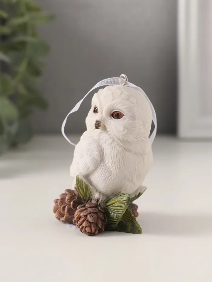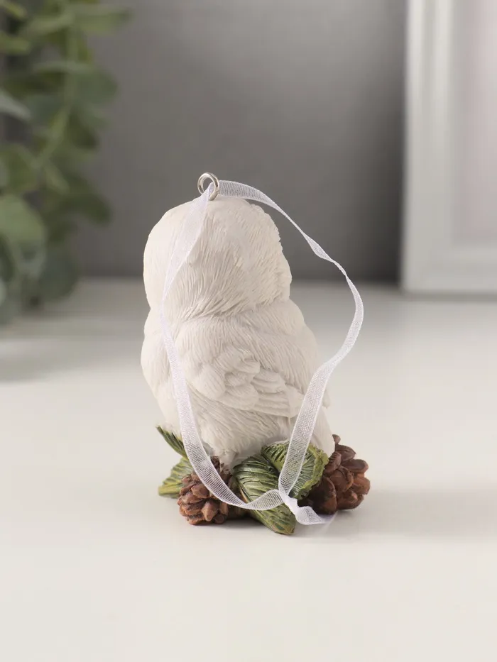 Фигурка-подвеска полистоун «Белая сова с сосновыми шишками», 5.5×4×7.5 см — Характеристики