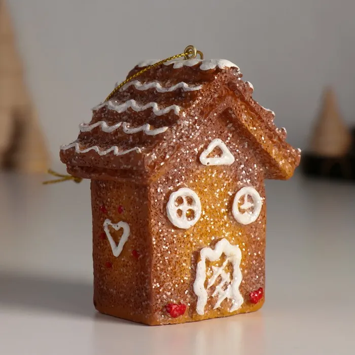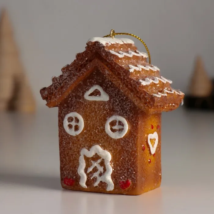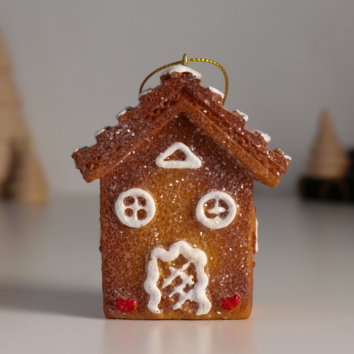 Фигурка-подвеска полистоун «Пряничный домик с белой глазурью», ёлочная игрушка, 4.5×7×8 см — Характеристики