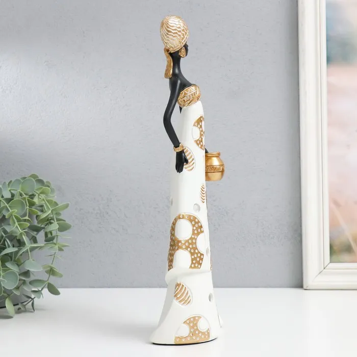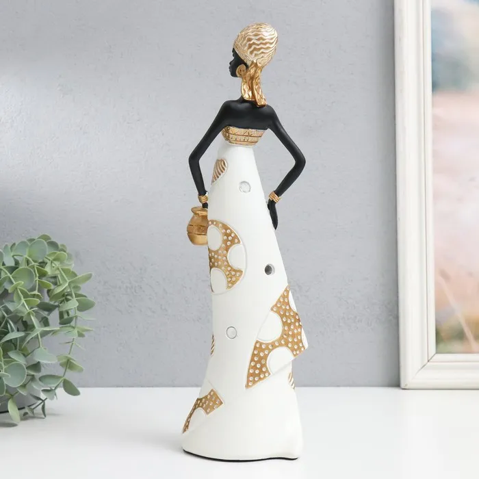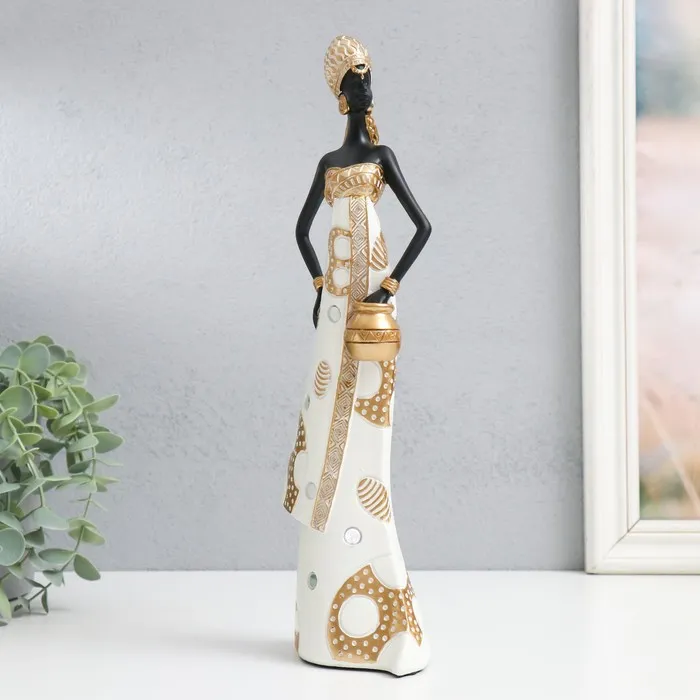 Фигурка полистоун «Африка: Королева пустыни, с горшочком», бело-золотой, 10×7×32.5 см — Характеристики