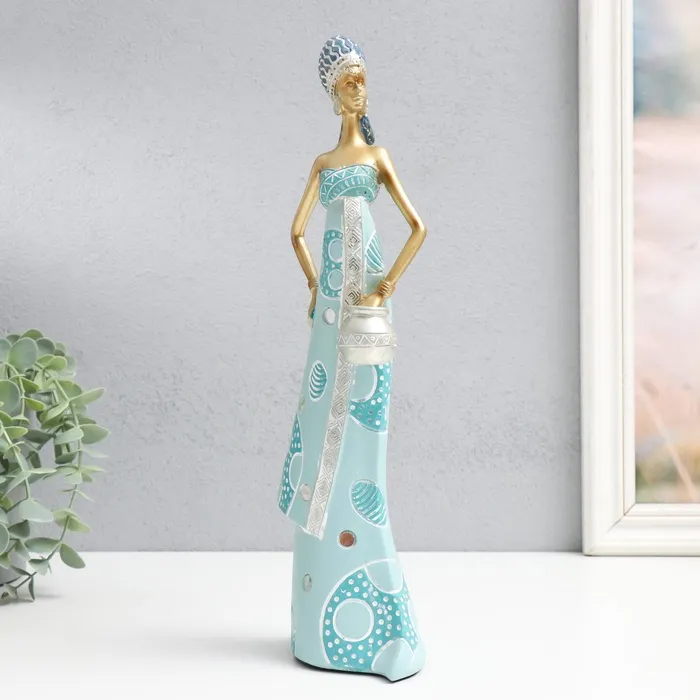 Фигурка полистоун «Африка - Королева пустыни, с горшочком», золото с голубым, 10×7×32.5 см — Характеристики