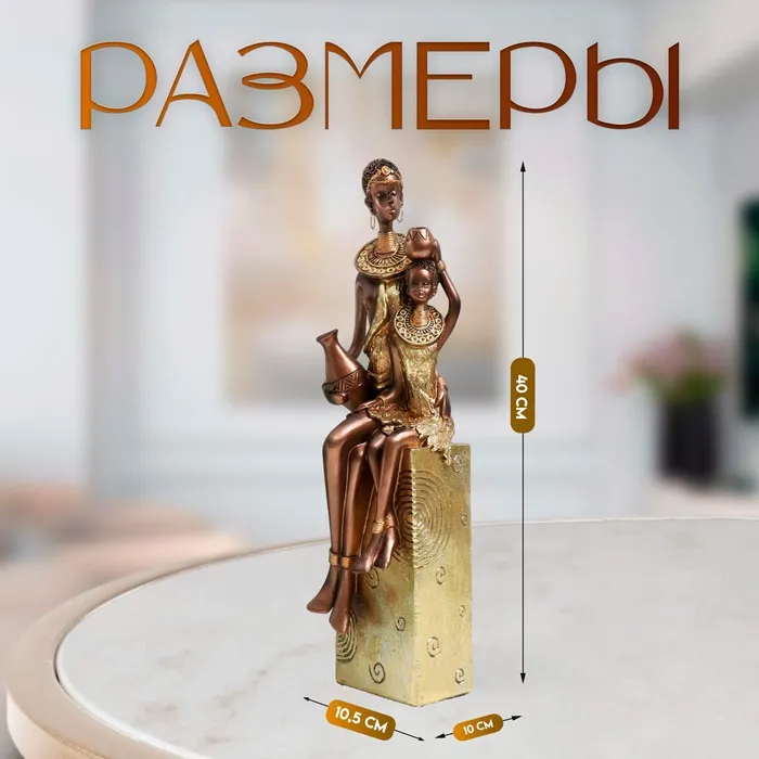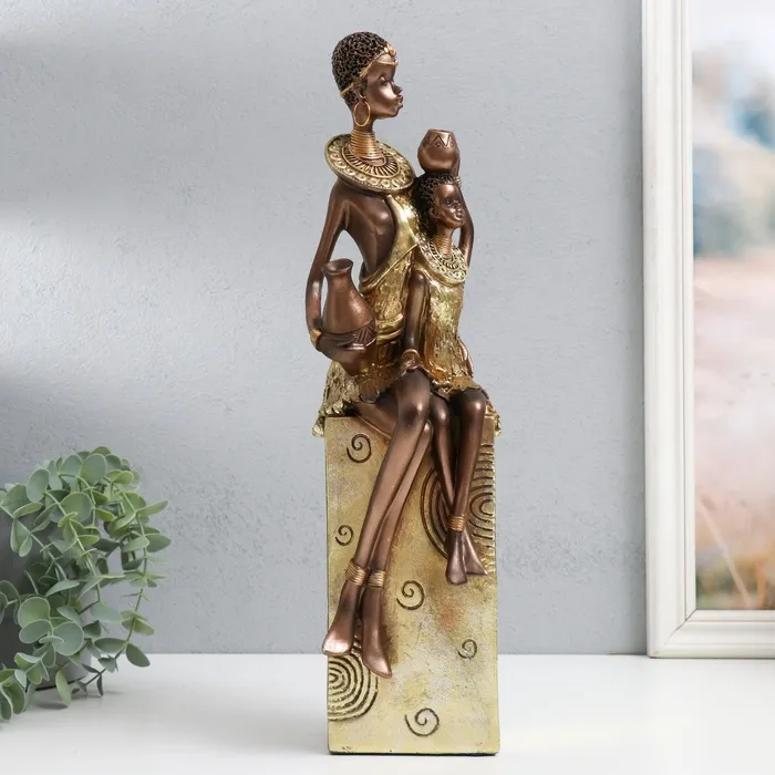 Фигурка полистоун «Африка. Мать и ребёнок», золото узор — круги, 10.5×10×40 см — Характеристики