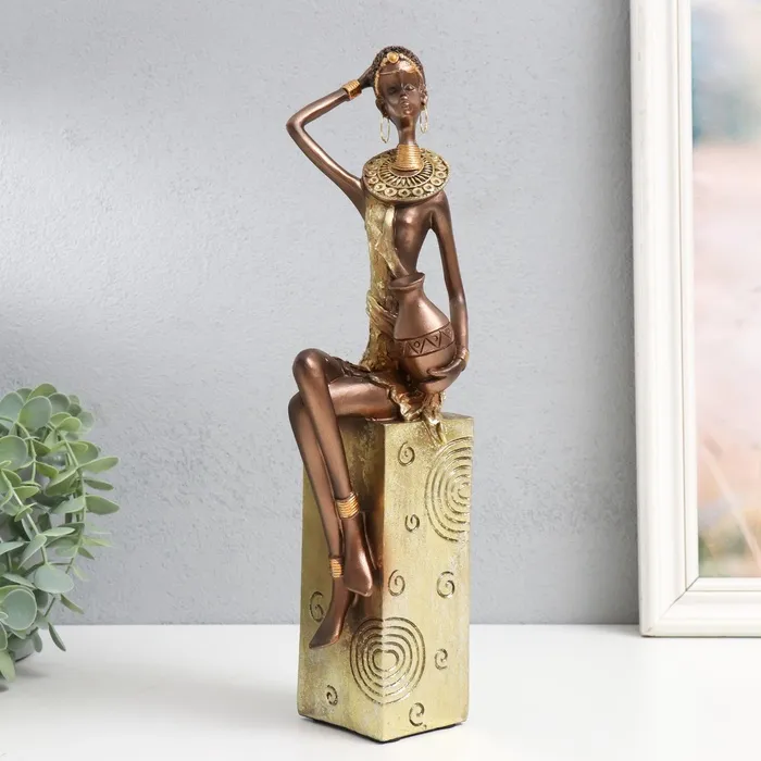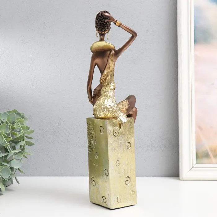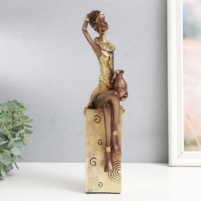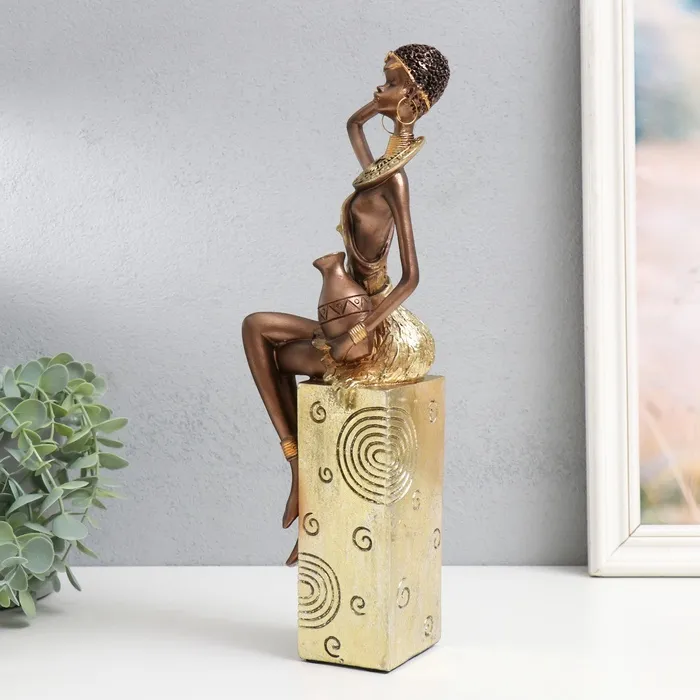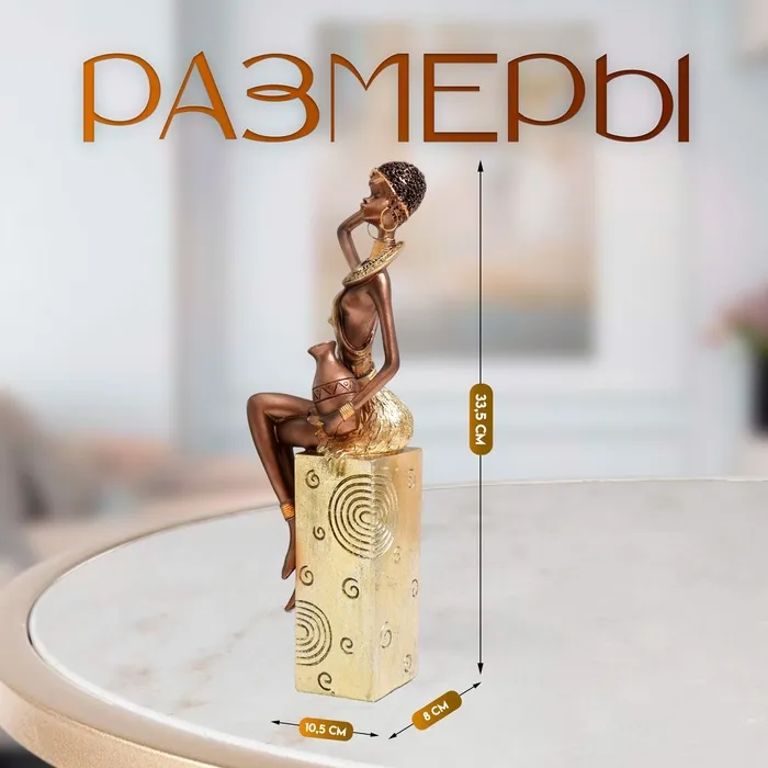 Фигурка полистоун «Африканка с кувшином, на подставке», золотой узор — круги, 10.5×8×33.5 см — Характеристики