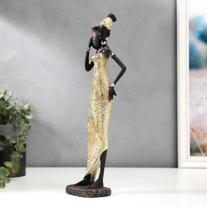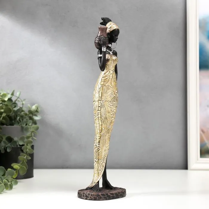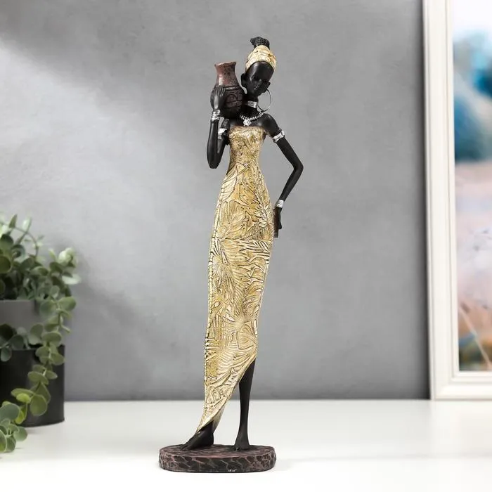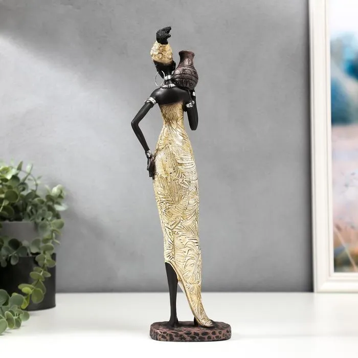 Фигурка полистоун «Африканка с кувшином в платье с пальмовыми листьями», 34.5×9.5×7.4 см, МИКС — Характеристики