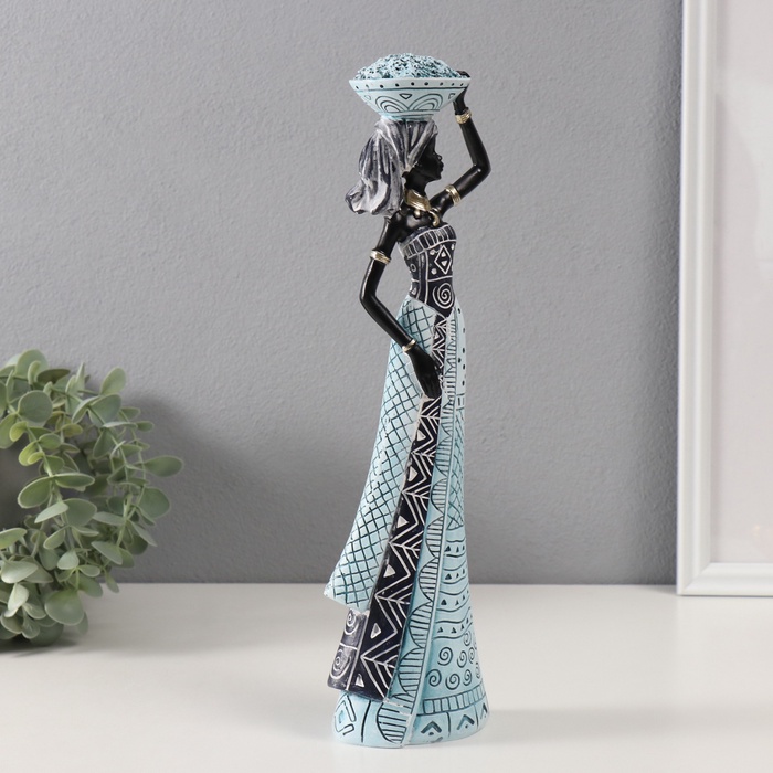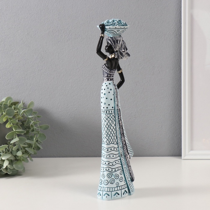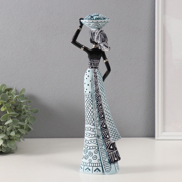 Фигурка полистоун «Африканка с тарелкой на голове», белый с синим, 10.5×6.5×33 см — Характеристики