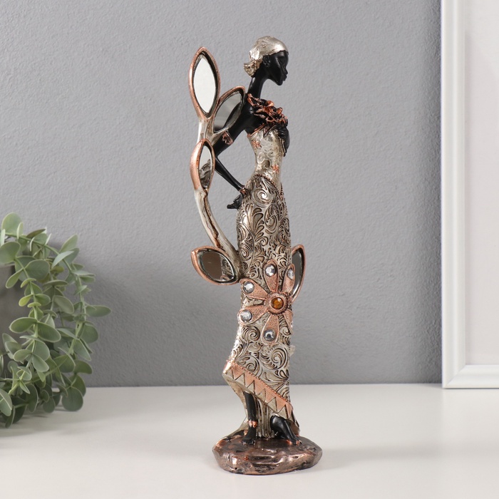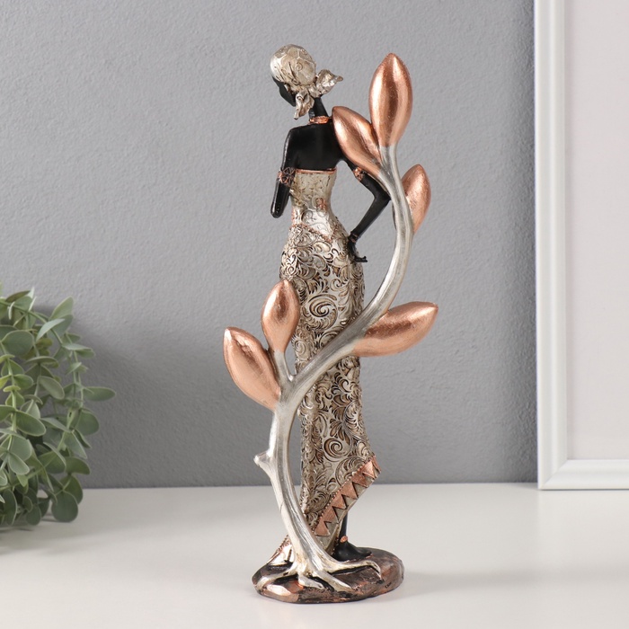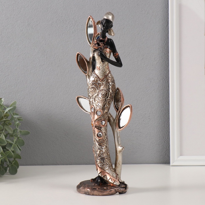 Фигурка полистоун «Африканка с цветком у дерева с зеркальными листьями», 13×9×32 см