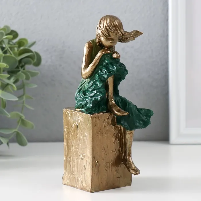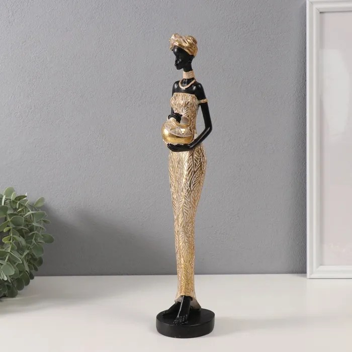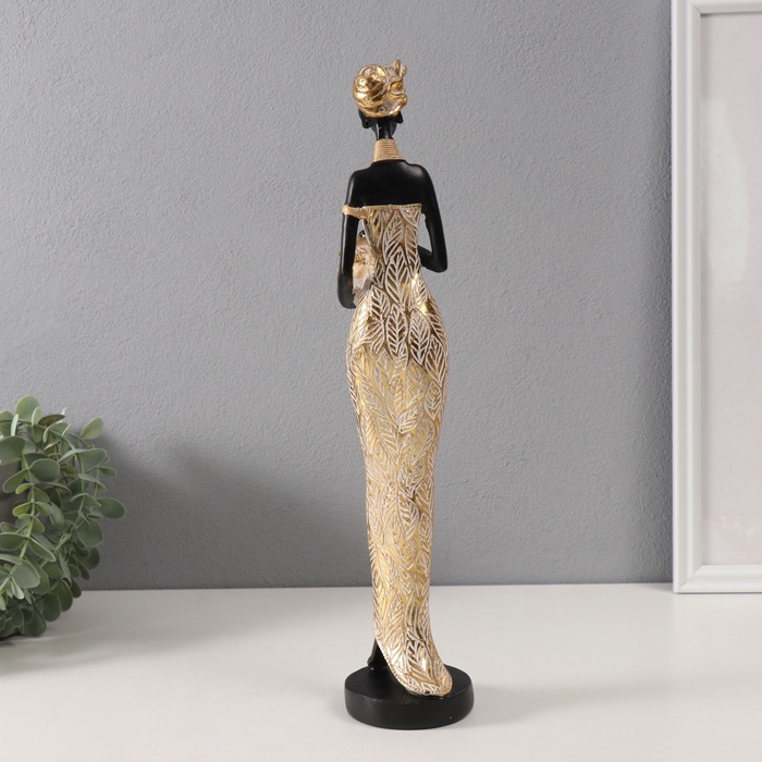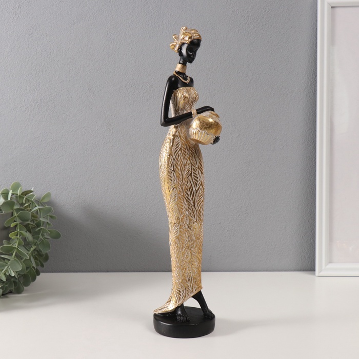 Фигурка полистоун «Африканка в платье с листьями, с горшком», золото, 8.5×8×39 см — Характеристики