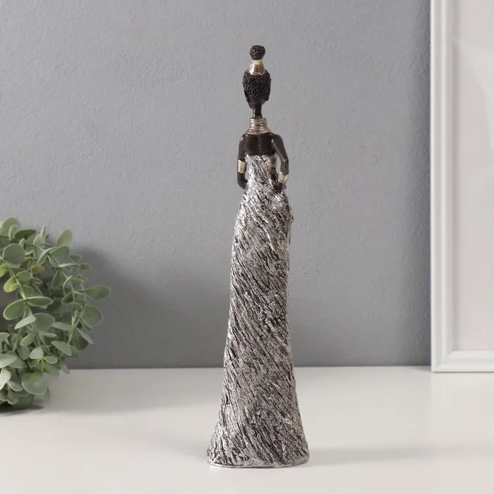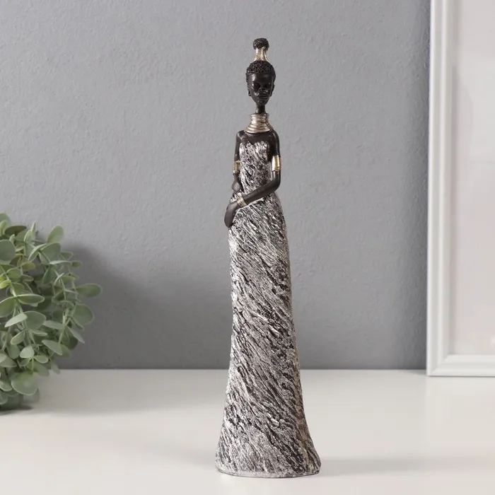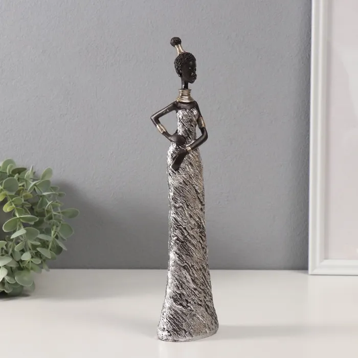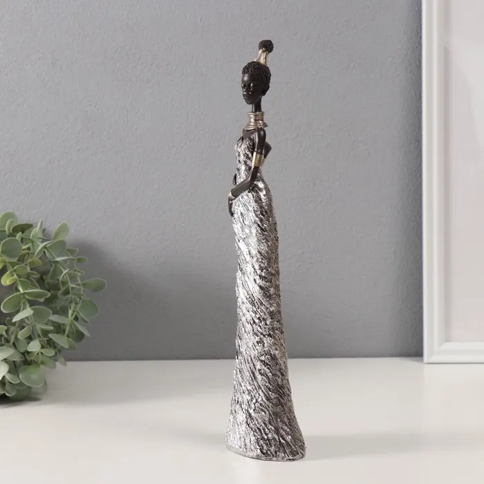 Фигурка полистоун «Африканка в серебристом платье, с золотыми украшениями», 8×5.5×31.5 см — Характеристики