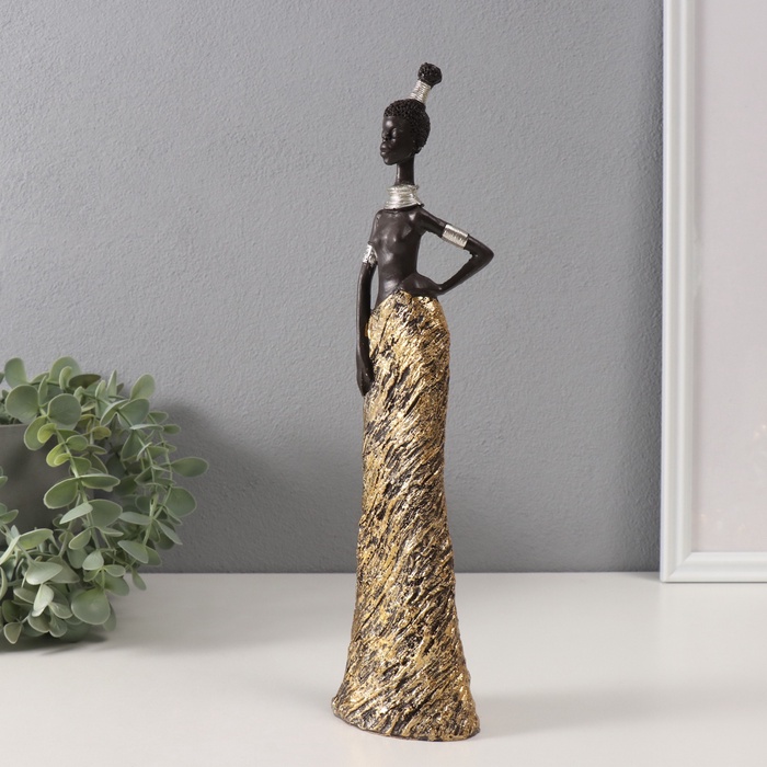 Фигурка полистоун «Африканка в золотой юбке, с золотыми украшениями», 8×5.5×31.5 см — Характеристики