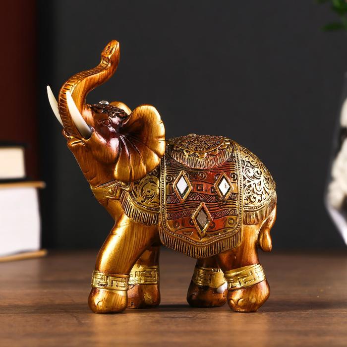 Фигурка полистоун «Африканский слон в золотой, ажурной попоне», 12×11×4.7 см, МИКС — Характеристики