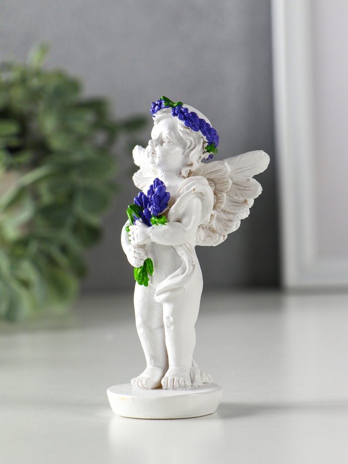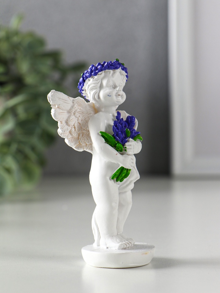 Фигурка полистоун «Ангел с букетом лаванды», бело-фиолетовый, 5.7×3.5×10 см, МИКС — Характеристики
