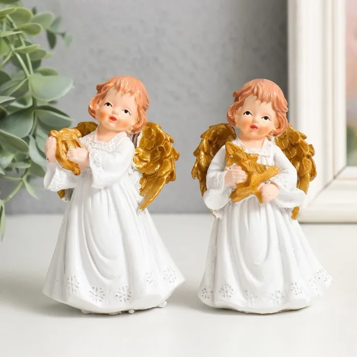Фигурка полистоун «Ангел с серебристыми узорами на крыльях», 8.7×4.2×2.8 см, МИКС — Характеристики