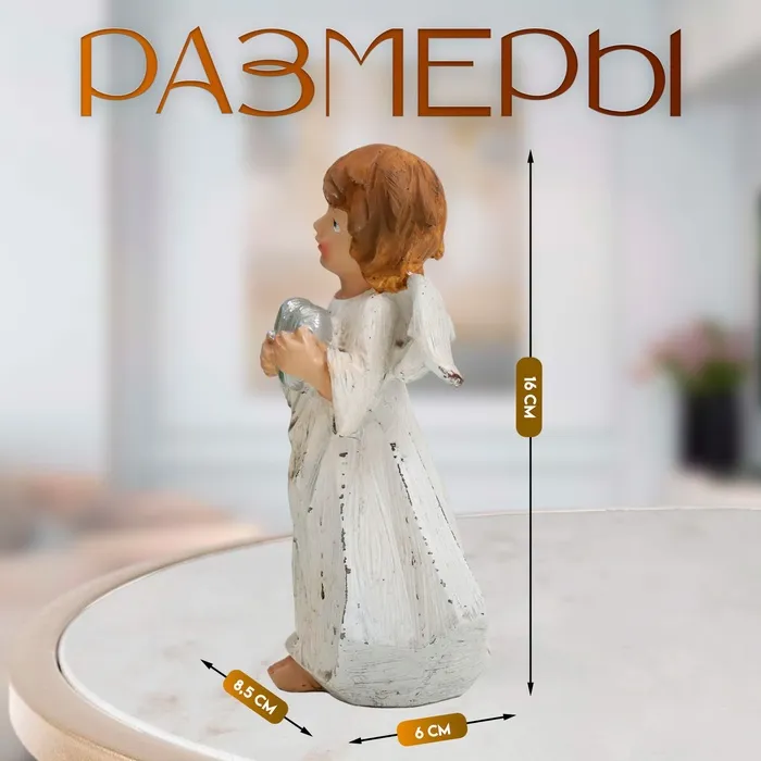 Фигурка полистоун «Ангел в бежевой тоге с сердечком», 6×8.5×16 см — Характеристики