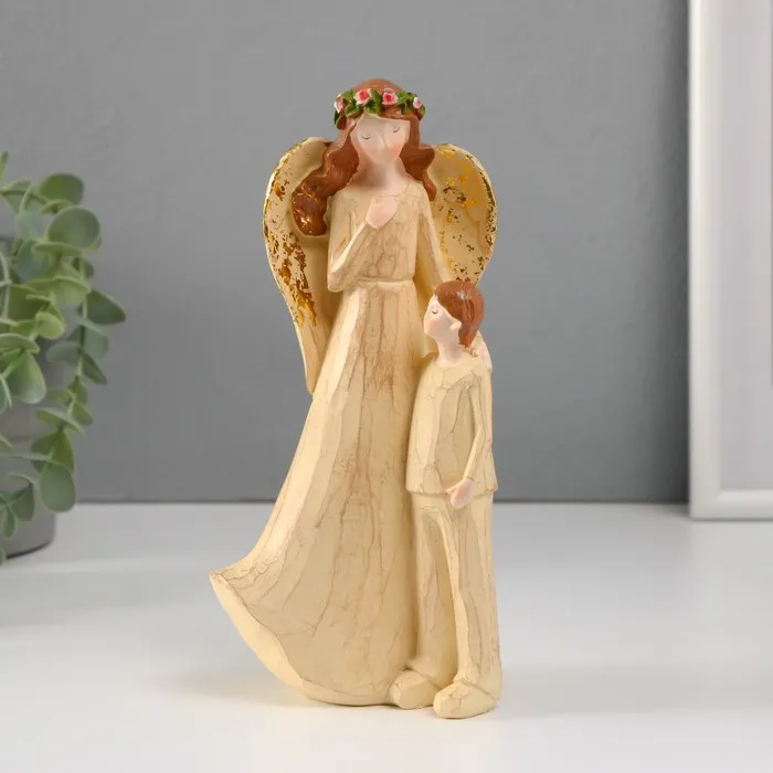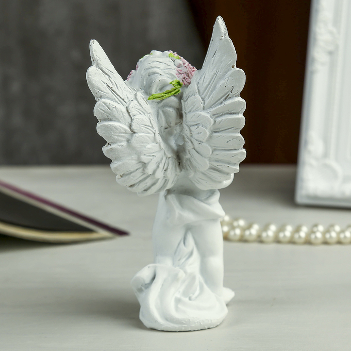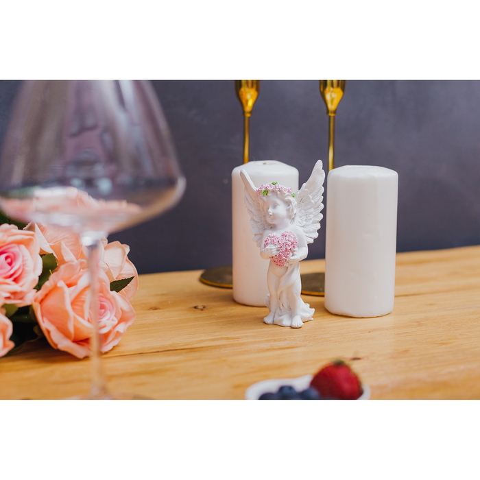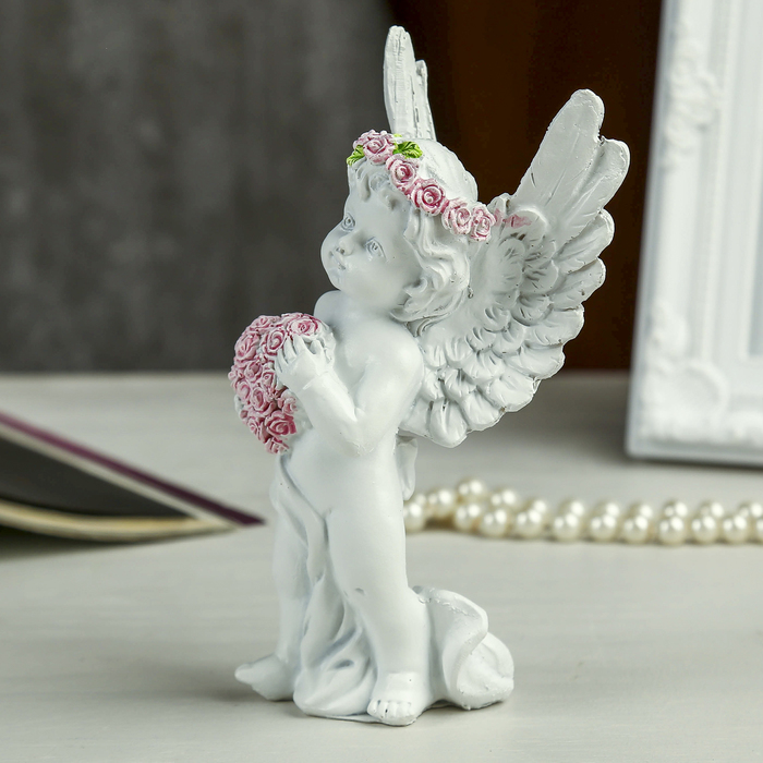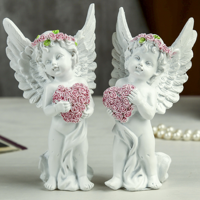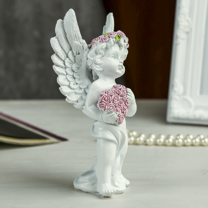 Фигурка полистоун «Ангел в розовом венке с сердцем из роз», 15×7.8×5.5 см, МИКС — Характеристики