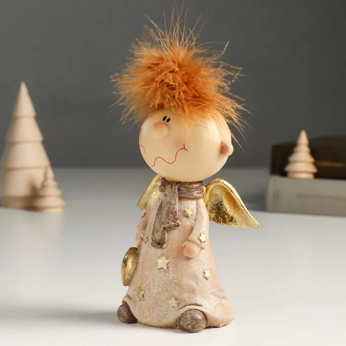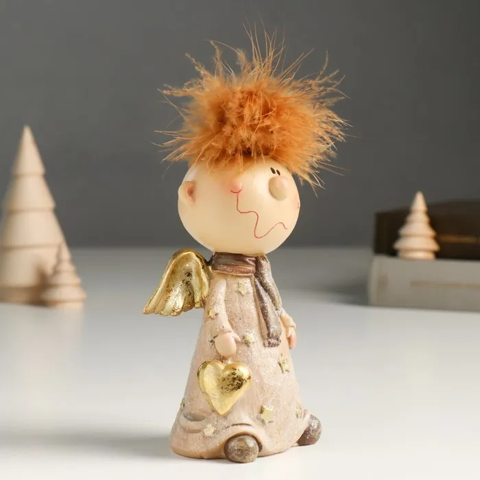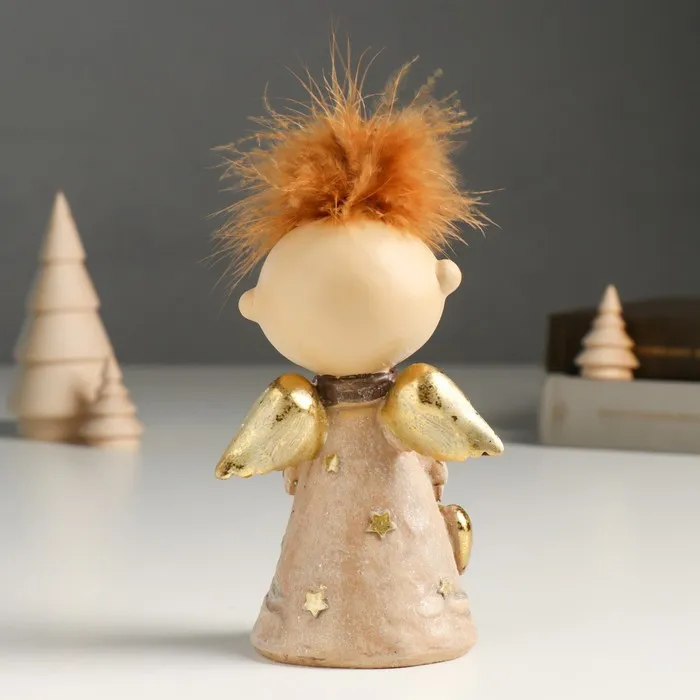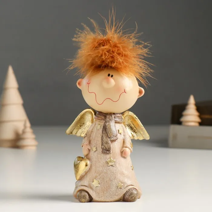 Фигурка полистоун «Ангелочек Афоня в наряде со звёздами, с сердцем», беж, блёстки, 6×9×14.5 см — Характеристики