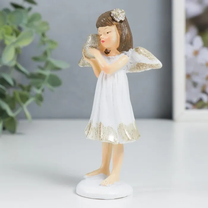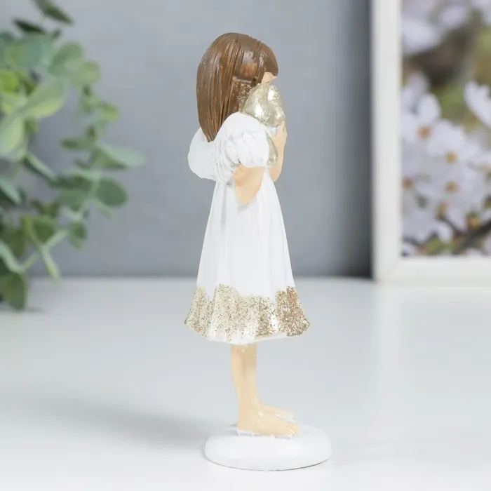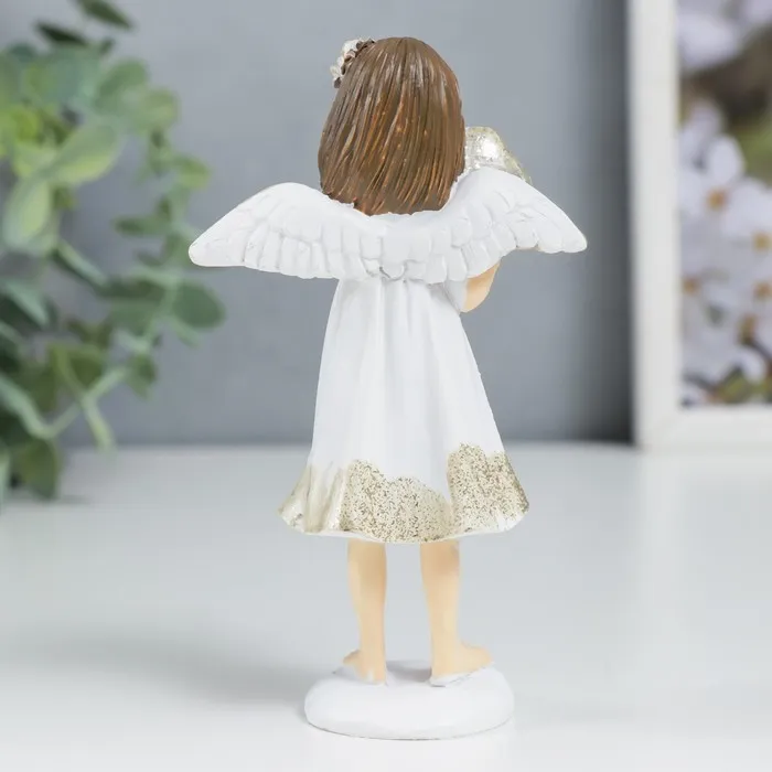 Фигурка полистоун «Ангелочек-девочка в белом платье с сердечком», 11×6.4×3.3 см — Характеристики