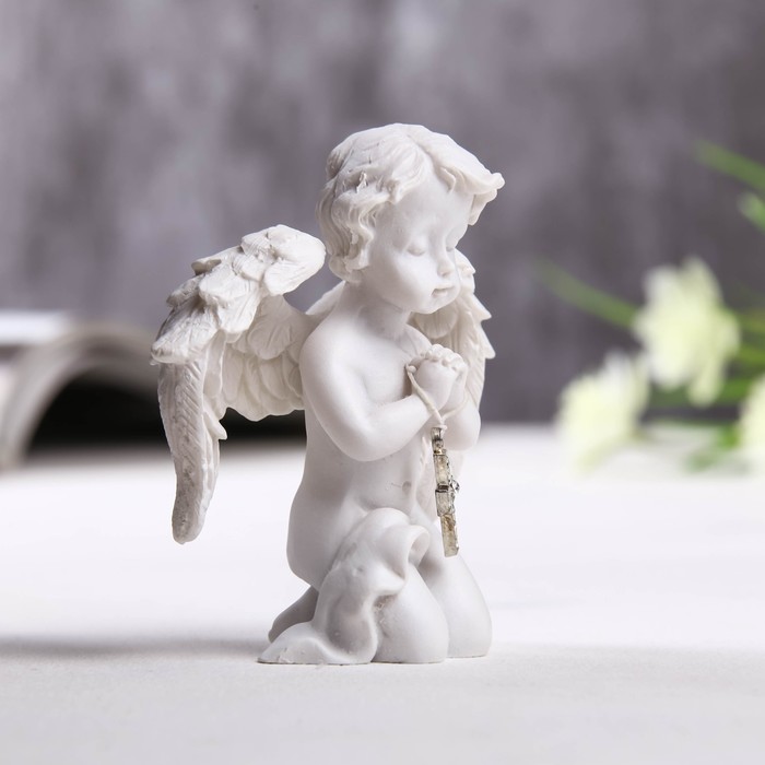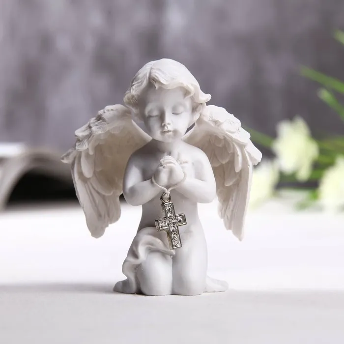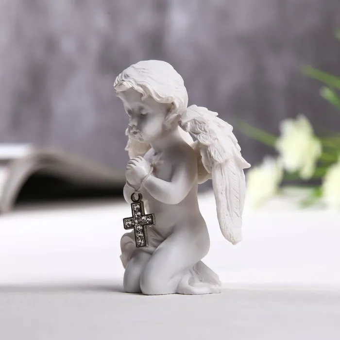 Фигурка полистоун «Ангелочек с крестиком из страз», 8×6.5×4 см — Характеристики