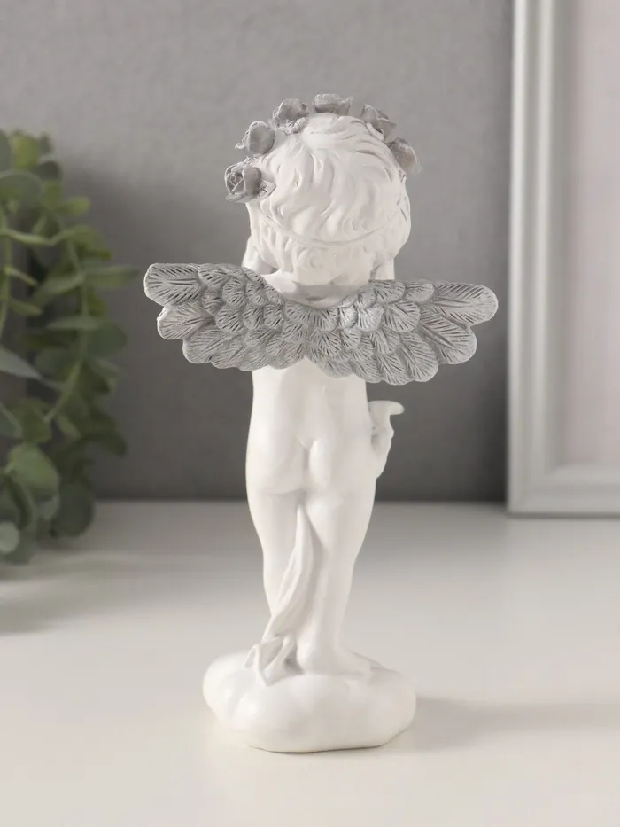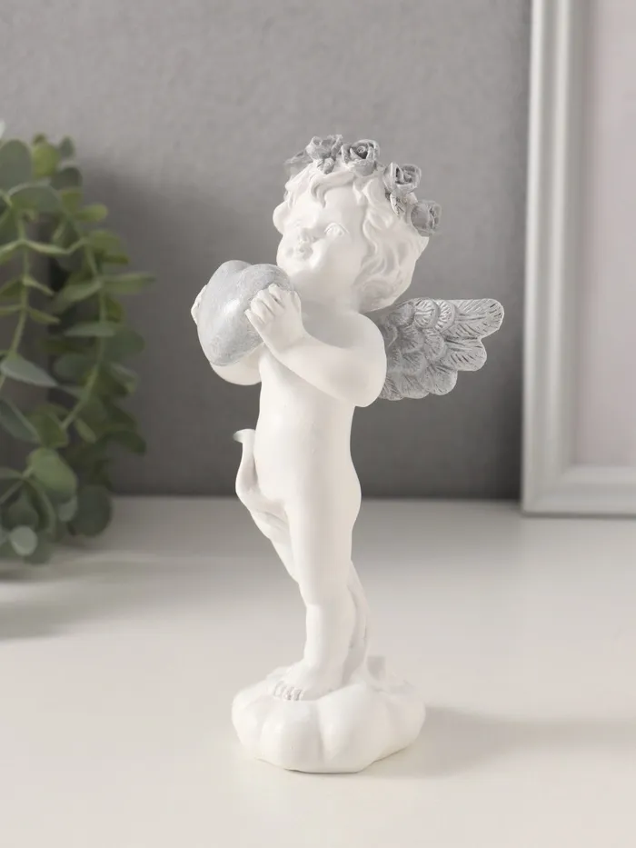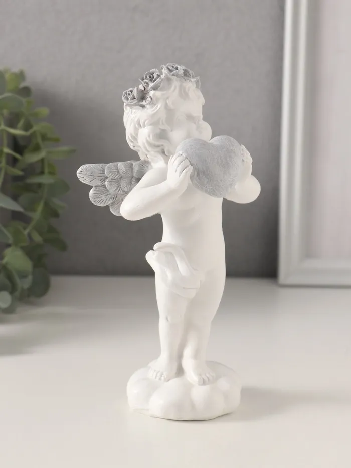 Фигурка полистоун «Ангелочек с сердцем в руках, с венком в волосах», 8.5×7×16.5 см — Характеристики