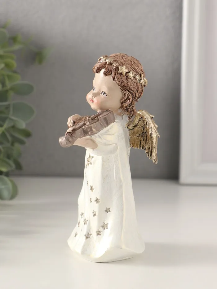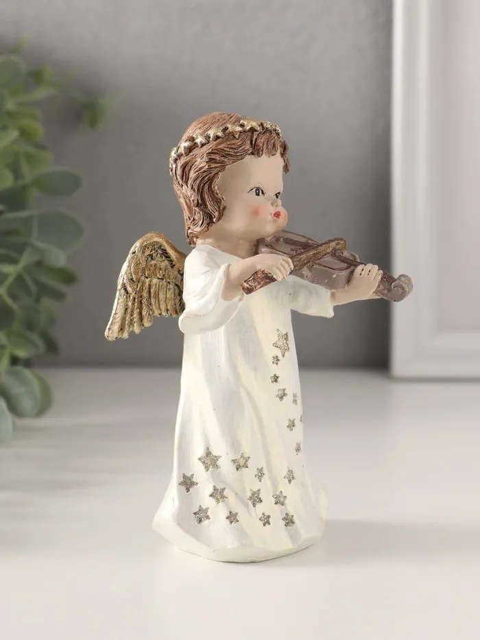 Фигурка полистоун «Ангелочек в платье со звёздами, скрипач», 7×5×13 см — Характеристики