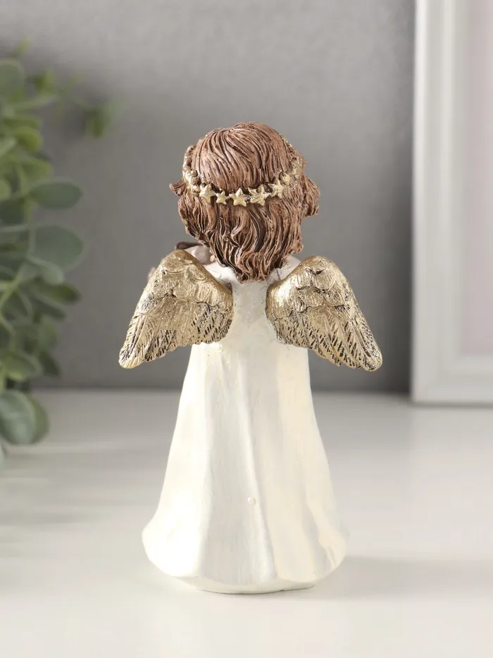 Представляем очаровательную фигурку, которая словно оживает в лучах света, наполняя пространство теплом и атмосферой волшебства. Маленький ангелочек в платье со звёздами, держащий скрипку, будто переносит нас в мир музыки, мечтаний и праздничного настроения. Высотой 13 см, она станет идеальным акцентом для полок, каминных зон или даже новогоднего декора, добавляя нотку уюта и гармонии.