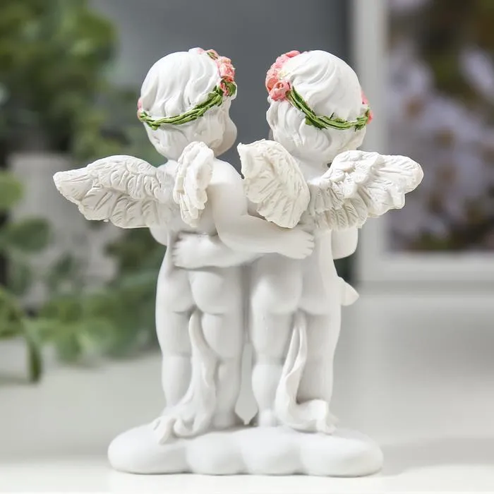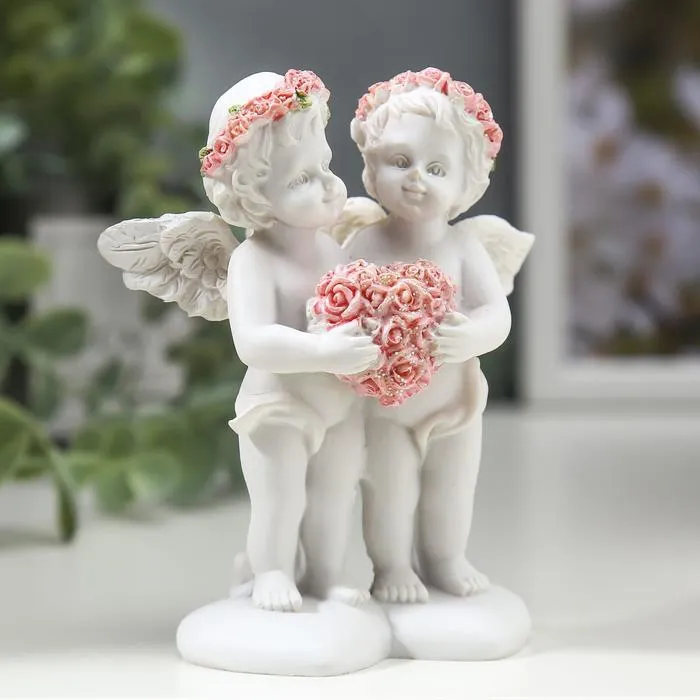Фигурка полистоун «Ангелочки в розовых веночках с сердцем из роз», 10×8.5×5.5 см — Характеристики