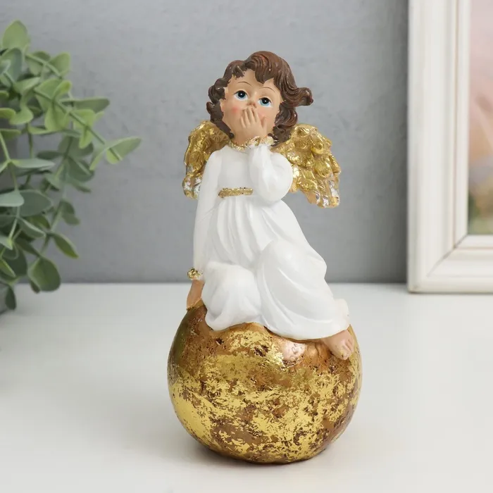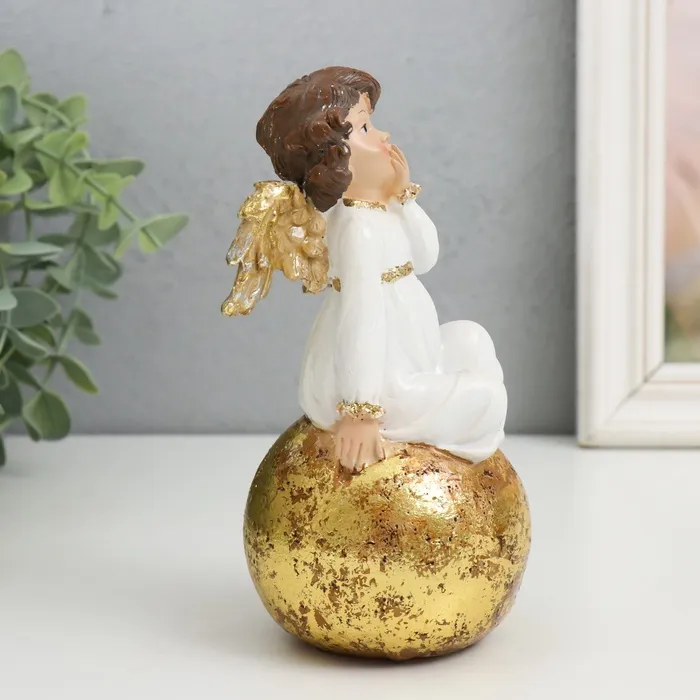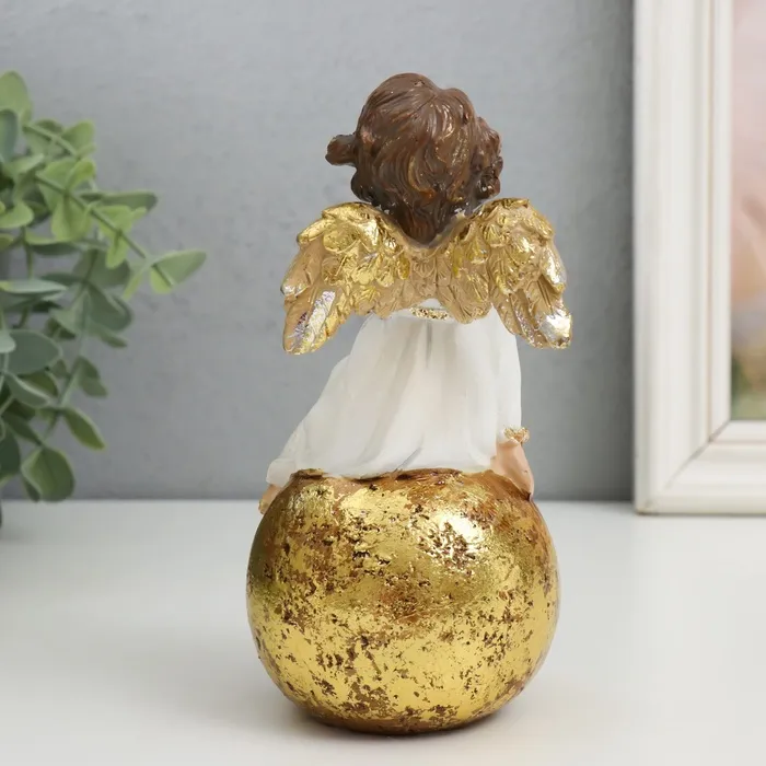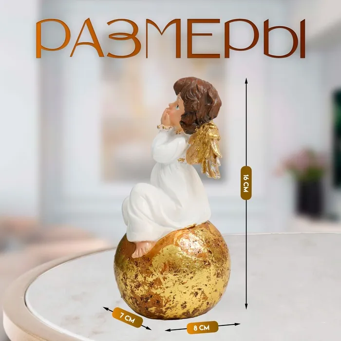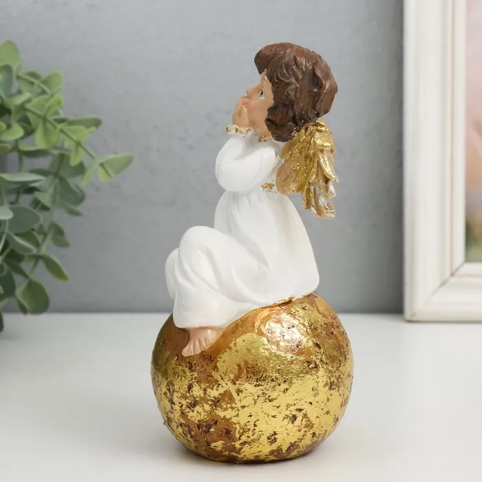 Фигурка полистоун «Ангелок с золотыми крыльями в бежевом платье на шаре», 7×8×16 см — Характеристики