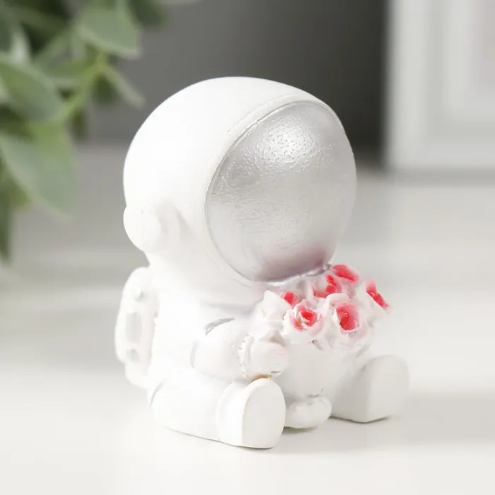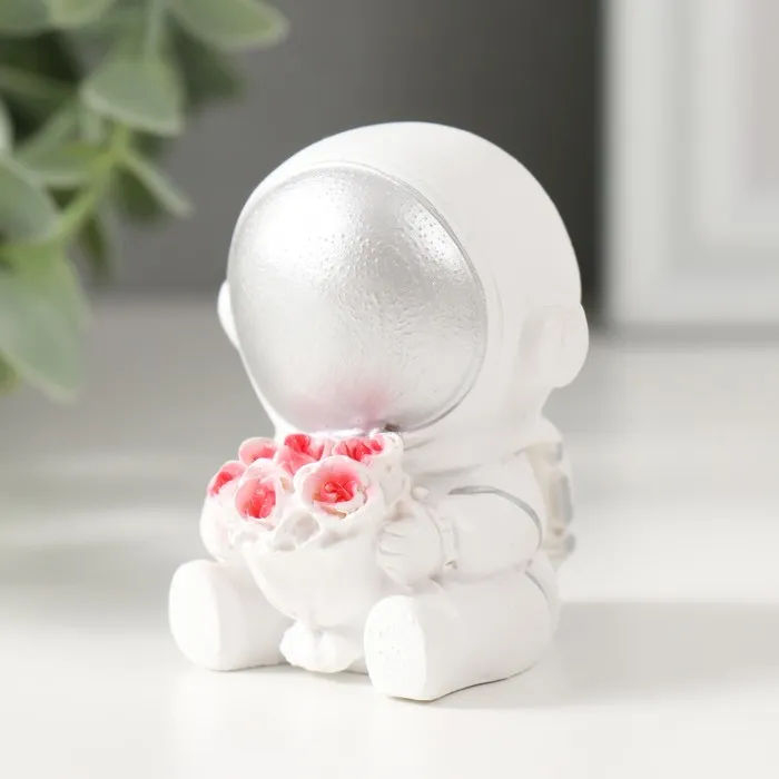Фигурка полистоун «Астронавт в белом скафандре с серебряным шлемом с букетом роз», 6×5×4.5 см — Характеристики