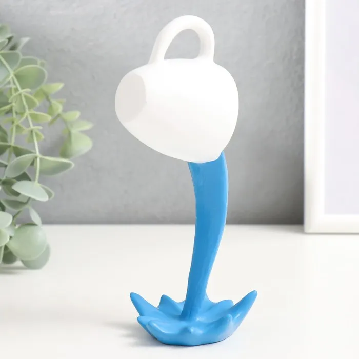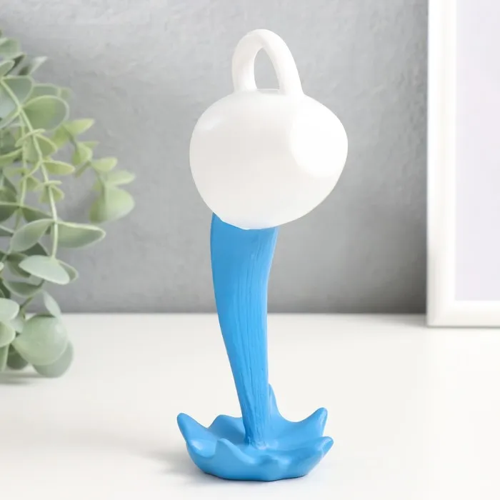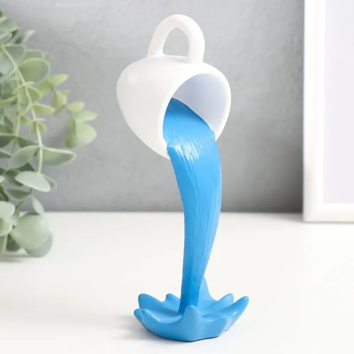 Позвольте себе на мгновение остановиться и насладиться эстетикой момента с этой изящной фигуркой. Её динамичная форма запечатлела мгновение, когда чашка будто бы падает в бездну, а застывшие брызги создают впечатление движения и лёгкости. Бело-голубая гамма добавляет свежести и гармонии, превращая её в универсальный элемент декора.