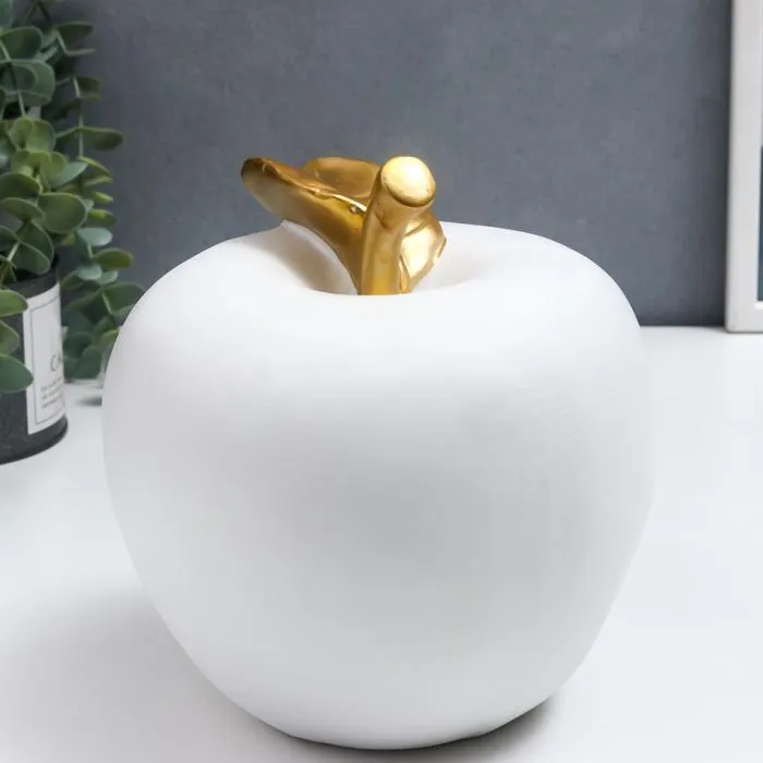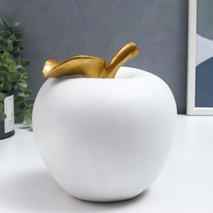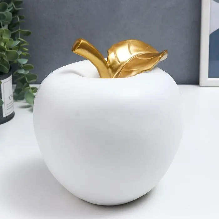Фигурка полистоун «Белое яблоко с золотым листочком», 18.5×17×17 см