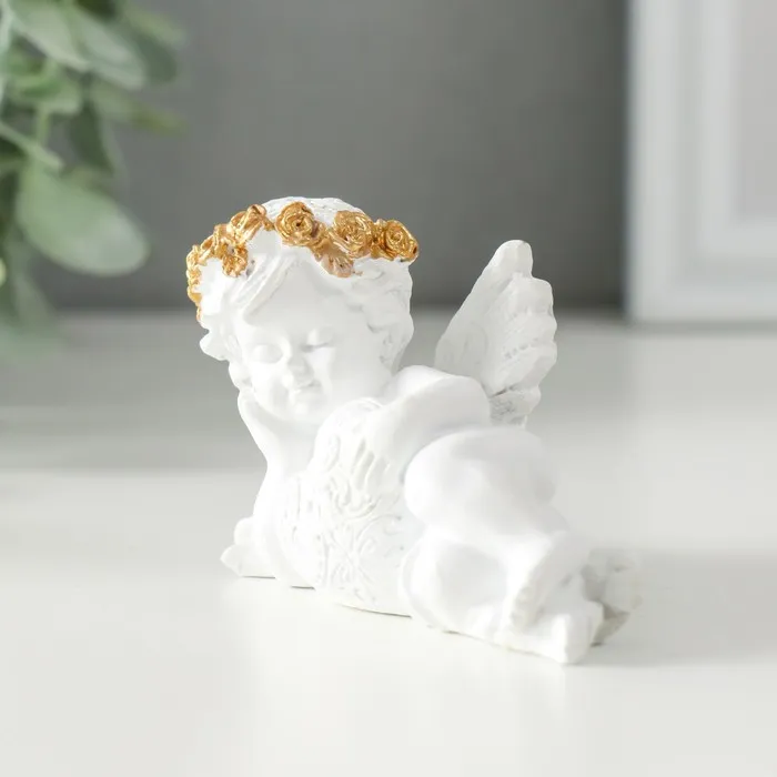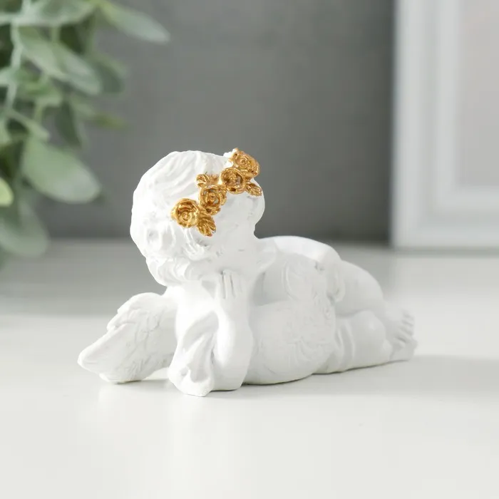 Фигурка полистоун «Белоснежный ангел обнимает сердечко с узорами», 9×4.5×5 см — Характеристики