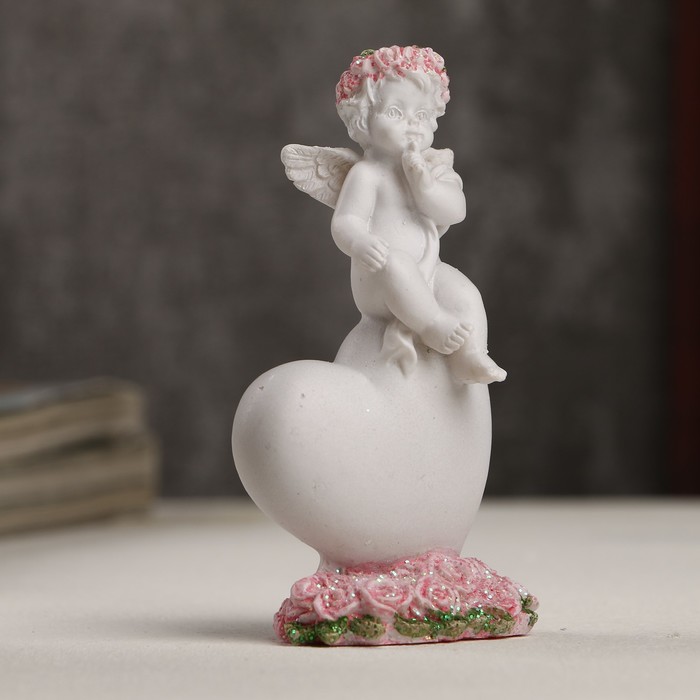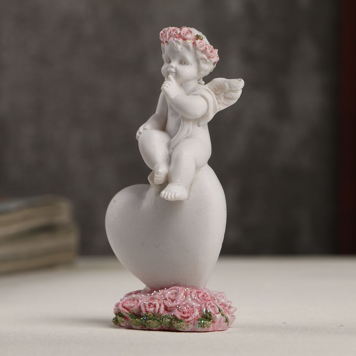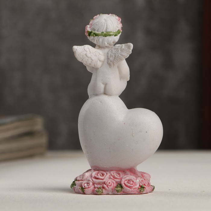 Фигурка полистоун «Белоснежный ангел в розовом веночке верхом на сердце», 8.5×4.3×2.2 см — Характеристики