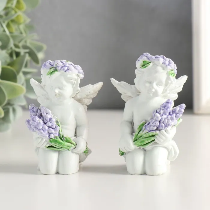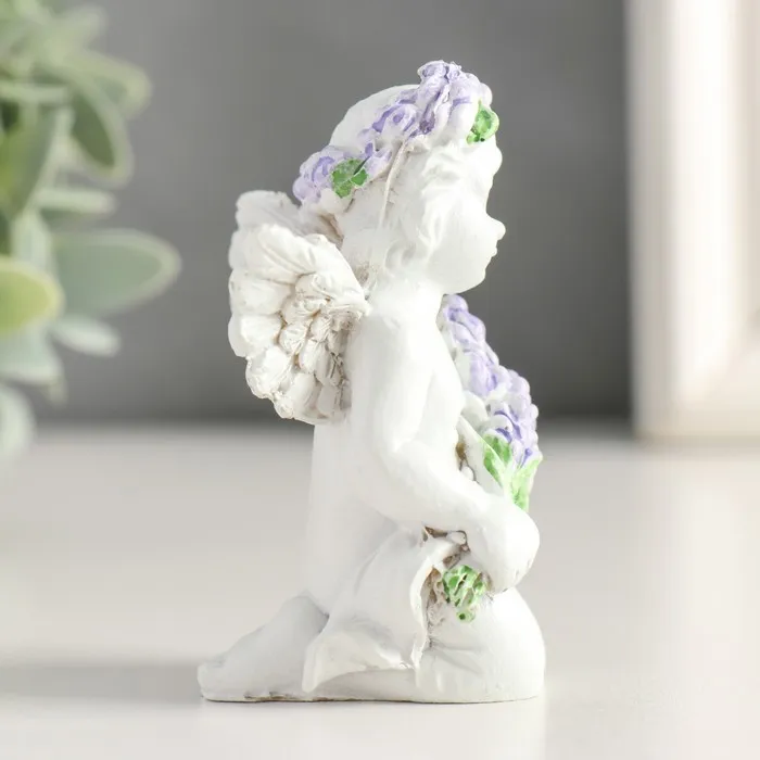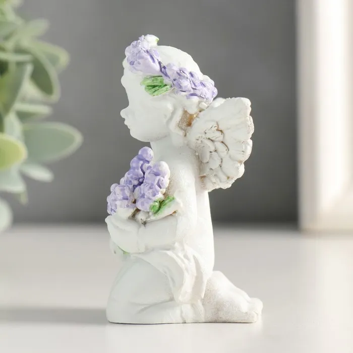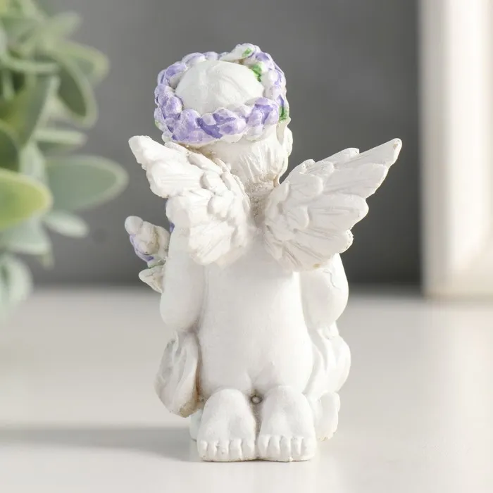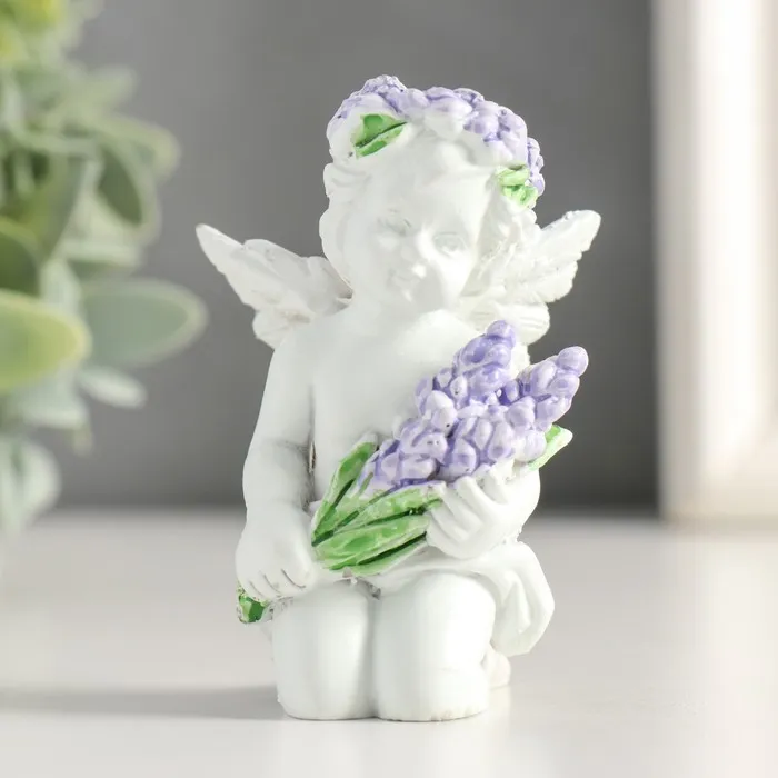 Фигурка полистоун «Белоснежный ангелок с лавандой, в венке из лаванды», 7.2×4.8×4 см, МИКС — Характеристики
