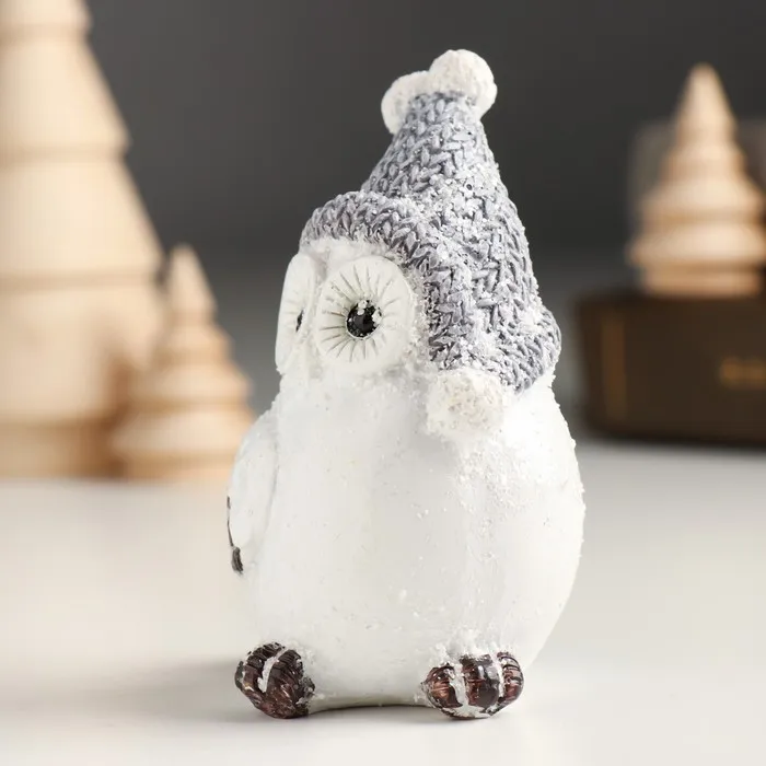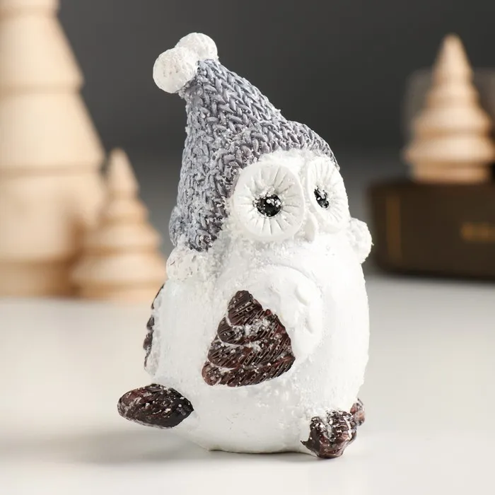 Белый цвет символизирует чистоту и гармонию, а тонкая детализация и мягкие оттенки добавляют изделию особого очарования. Колпак с посыпкой напоминает о зимних праздниках, когда каждый дом наполнен теплом и уютом. Филин, как символ мудрости, привносит в пространство нотку спокойствия и уверенности, делая эту фигурку не только украшением, но и источником положительных эмоций.