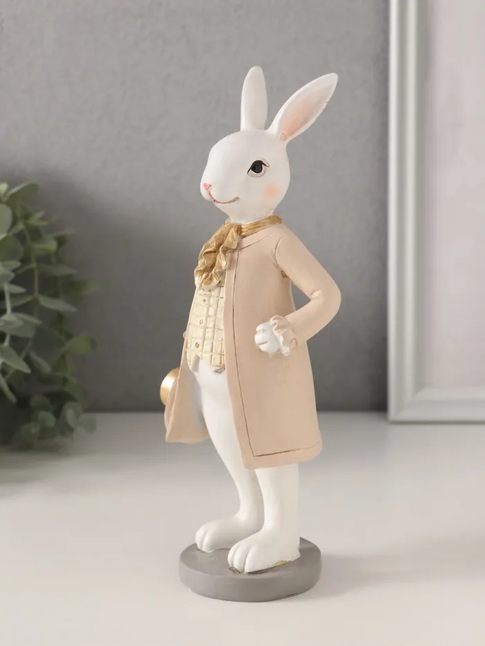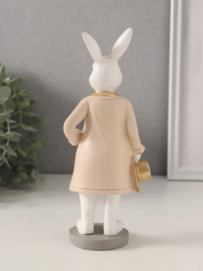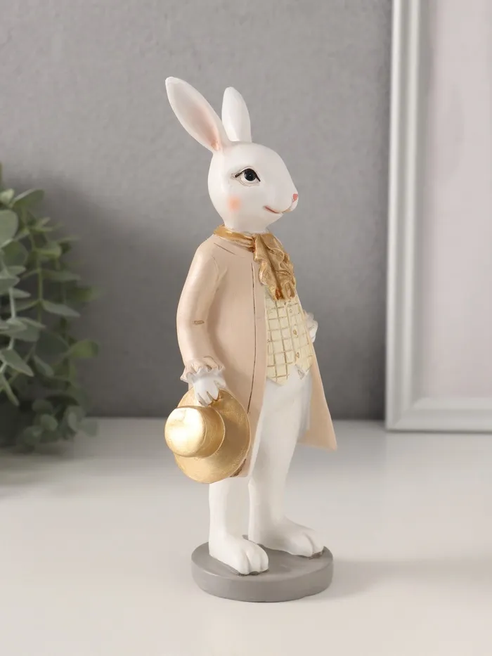 Фигурка полистоун «Белый кролик с золотым цилиндром и жабо», 8.5×6×20 см — Характеристики