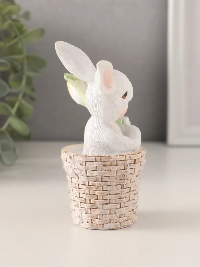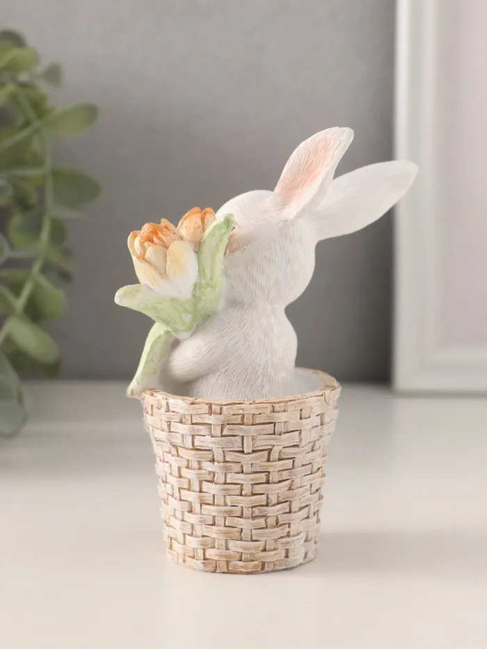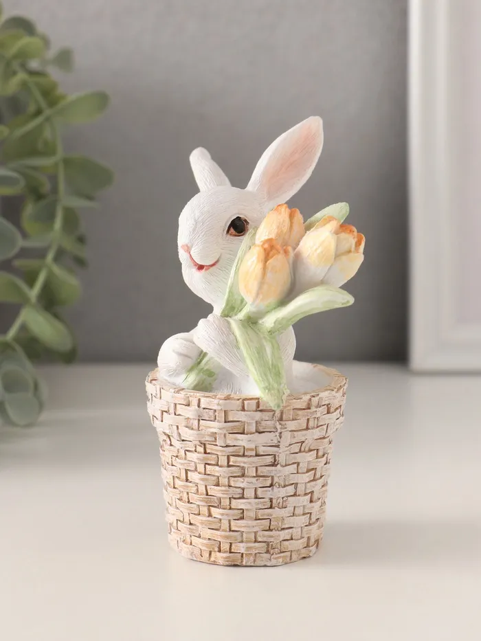 Фигурка полистоун «Белый кролик в плетёной корзине с тюльпанами», 8.5×5.5×11.5 см — Характеристики