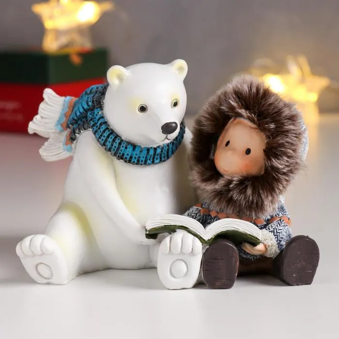 Фигурка полистоун «Белый мишка с малышом читают книжку», 9×9.5×12.5 см — Характеристики