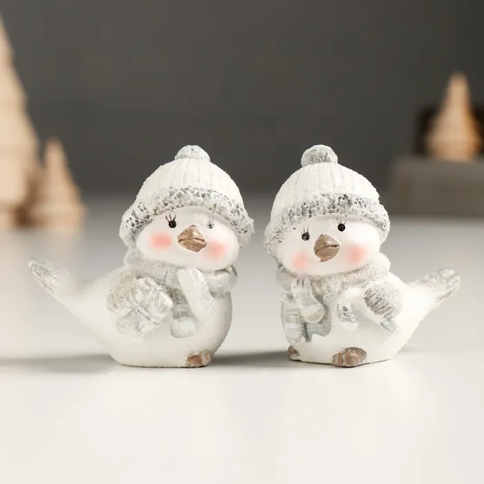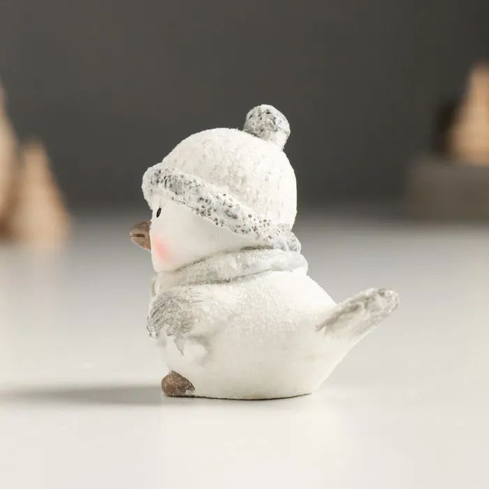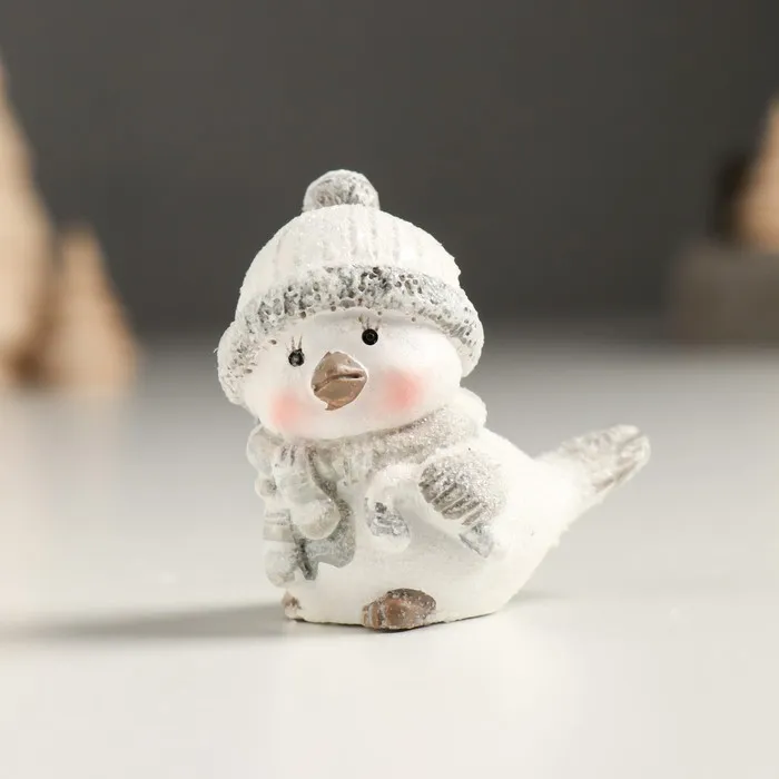 Фигурка полистоун «Белый птенчик в шапке и вязанном шарфе», серебро, 5×3.5×5 см, МИКС — Характеристики