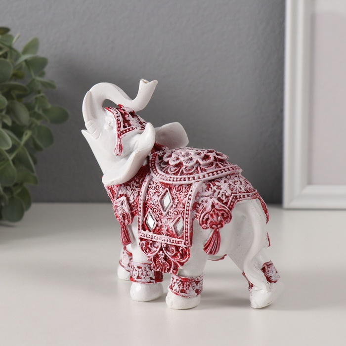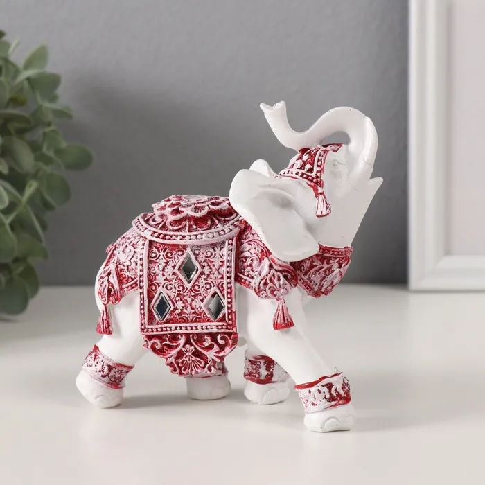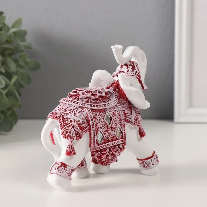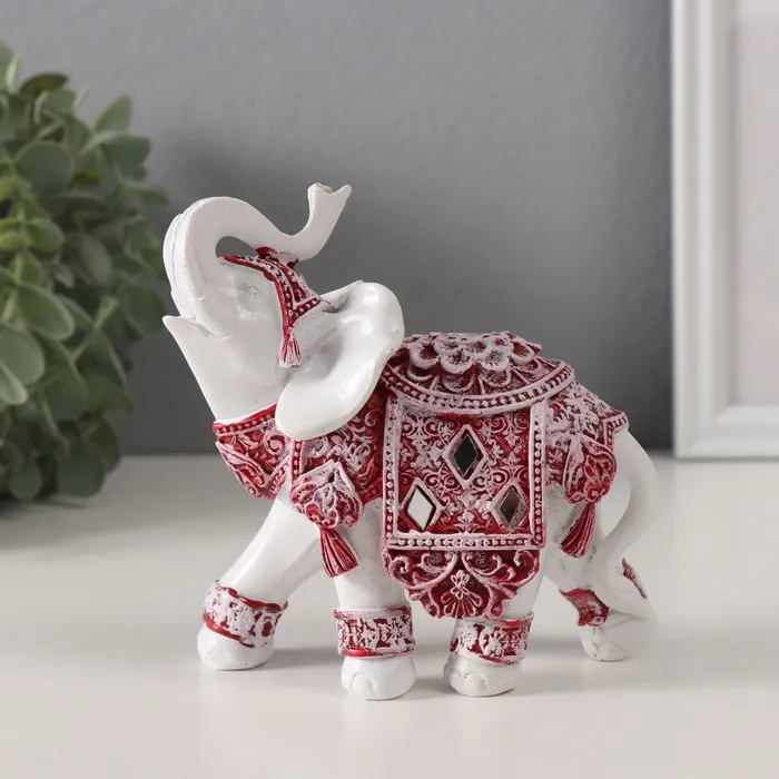 Фигурка полистоун «Белый слон. Бордовая попона с цветком и стразой», правый, 12×6×12 см — Характеристики