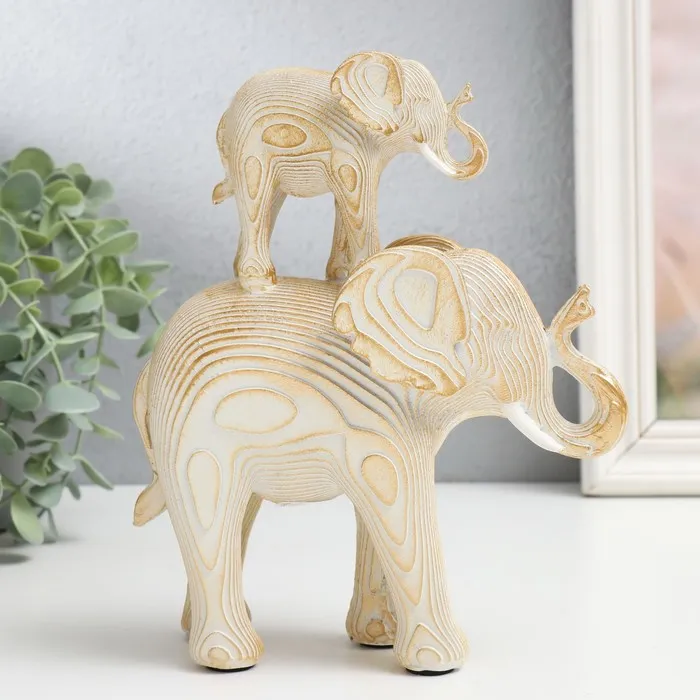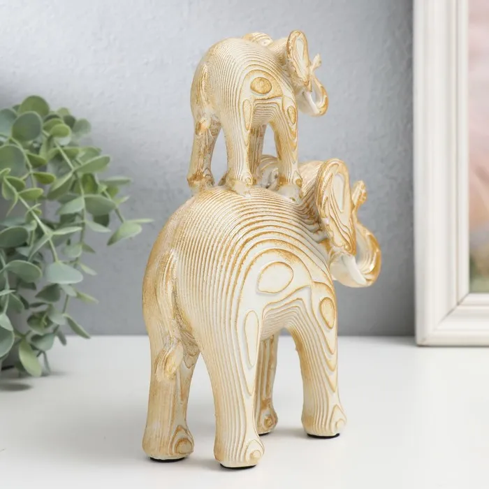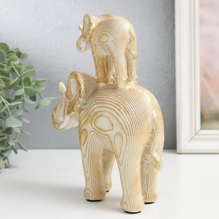 Фигурка полистоун «Белый слон со слонёнком на спине, с золотом: слои», 16×7×19.5 см — Характеристики