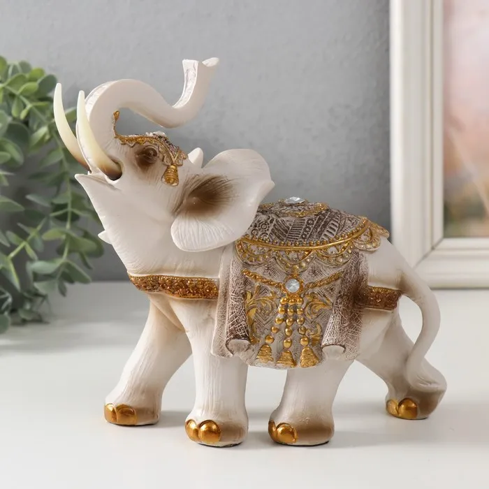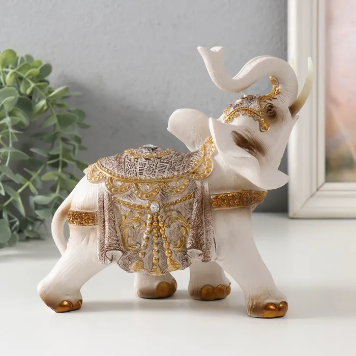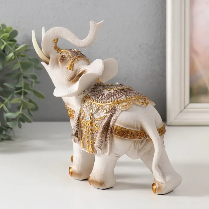 Фигурка полистоун «Белый слон в попоне с золотом», 16.5×8×17.5 см, МИКС — Характеристики