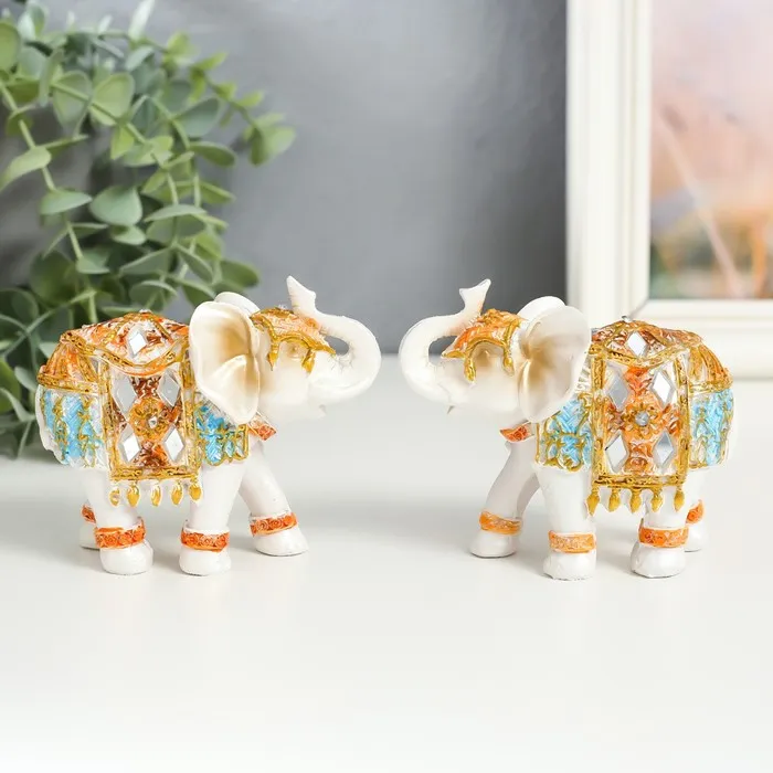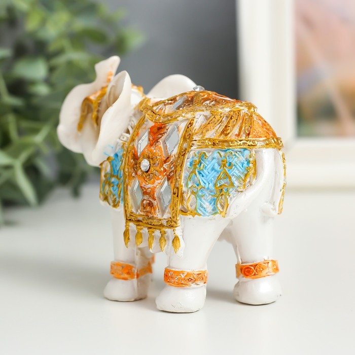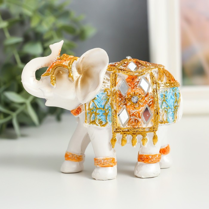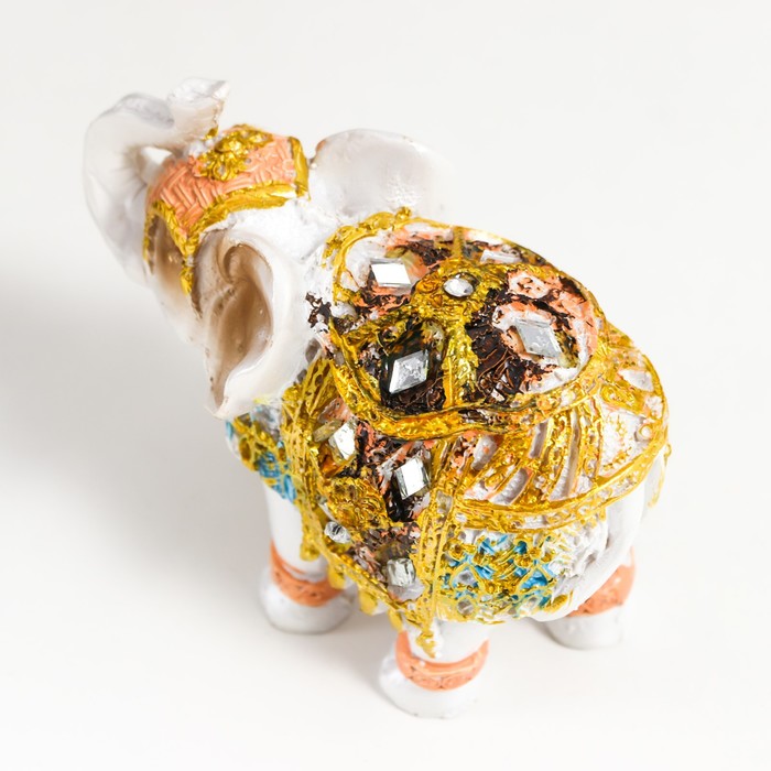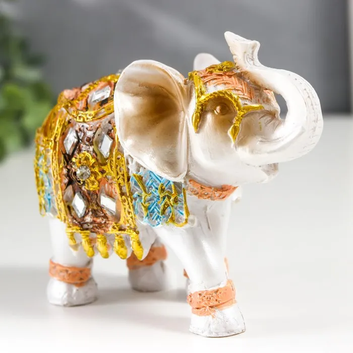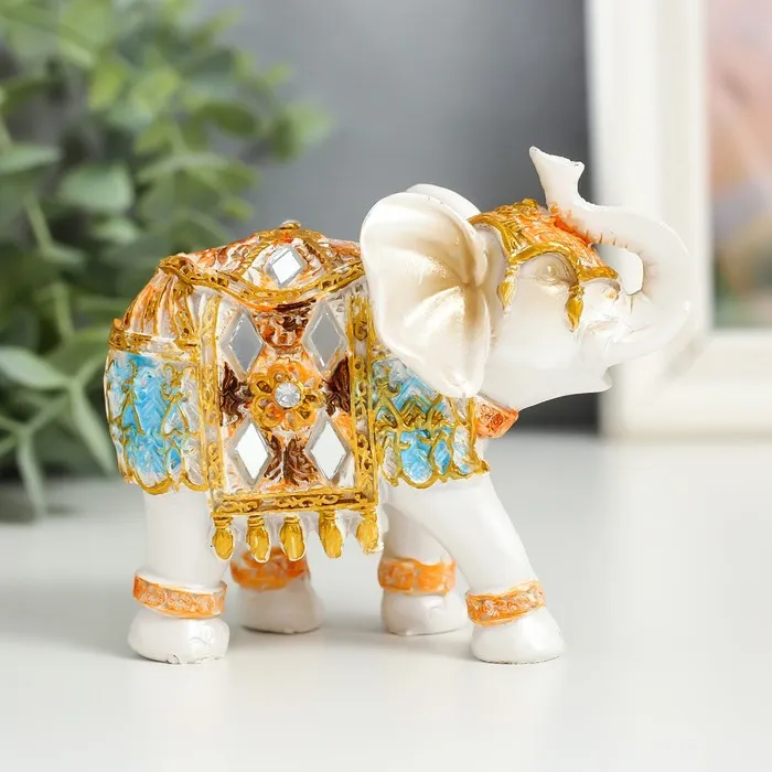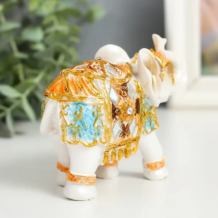 Фигурка полистоун «Белый слон в золотой попоне с синими вставками», 9.5×5×7 см, МИКС — Характеристики