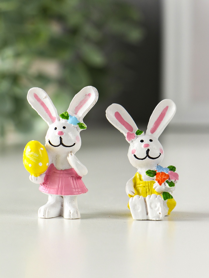Фигурка полистоун «Белый зайка с яйцом/букетом», 2.2×3×4.2 см, МИКС — Характеристики