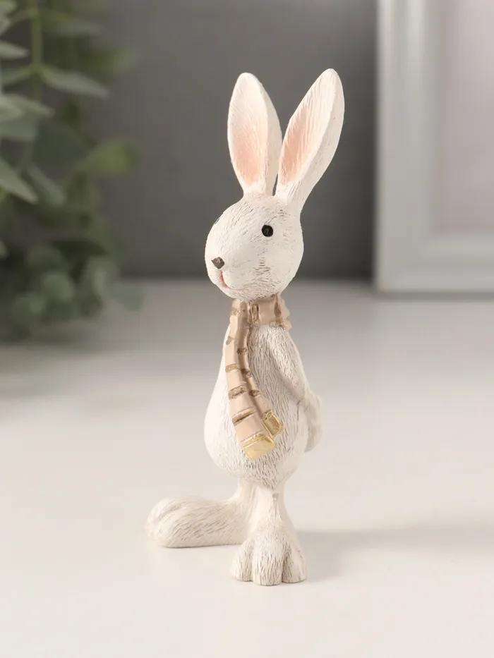 Фигурка полистоун «Белый зайка в полосатом шарфе», 5×3.5×11 см — Характеристики
