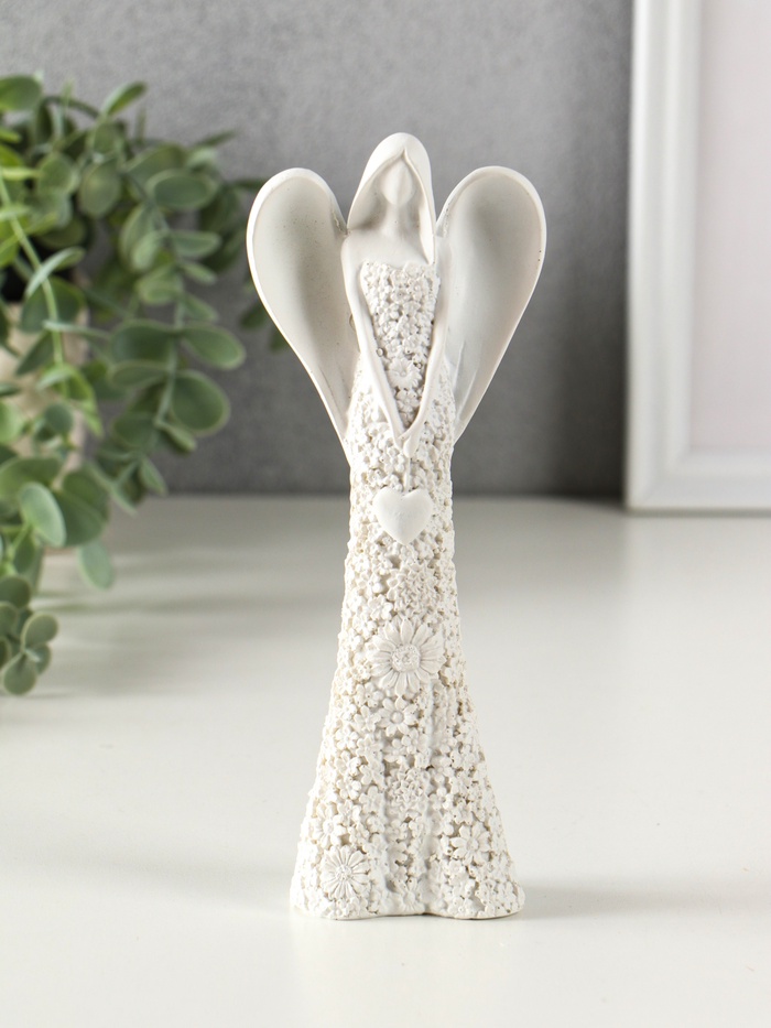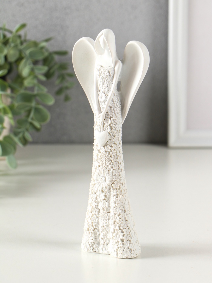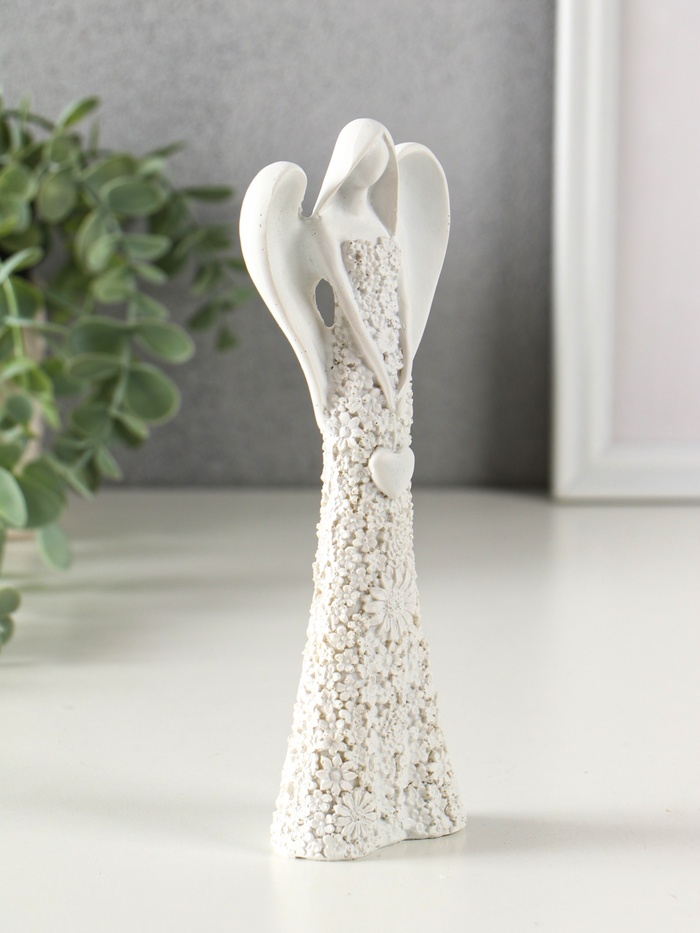 Фигурка полистоун «Безликий ангел в цветочном белом платье с сердцем», 20 см, МИКС — Характеристики
