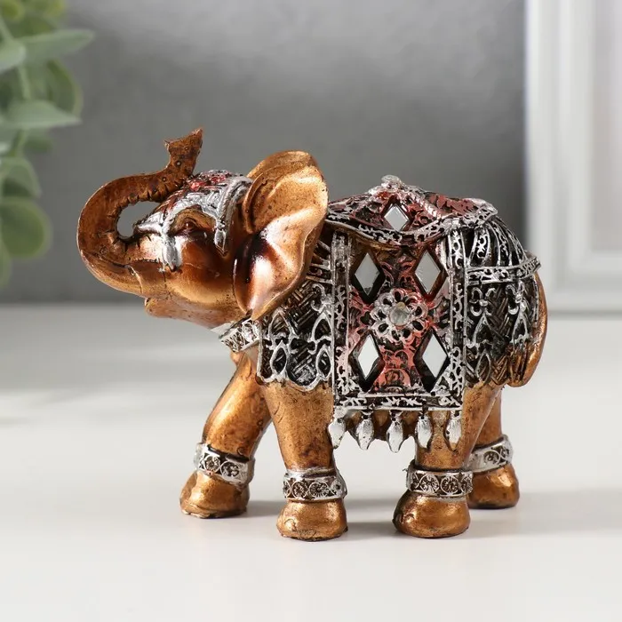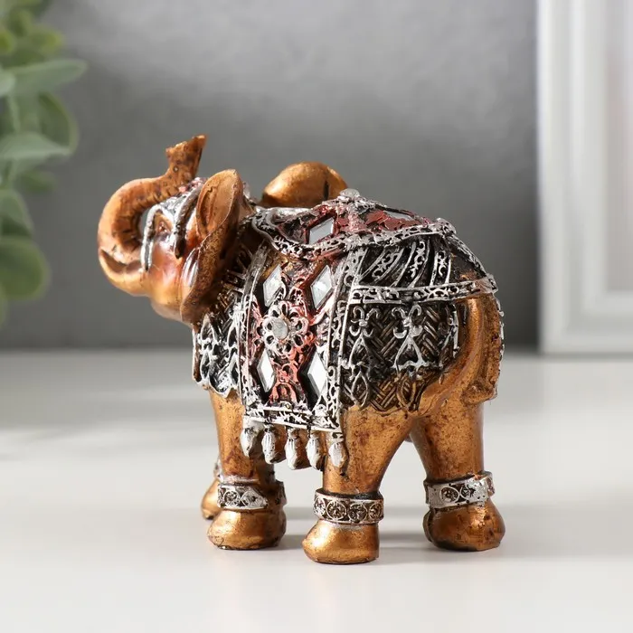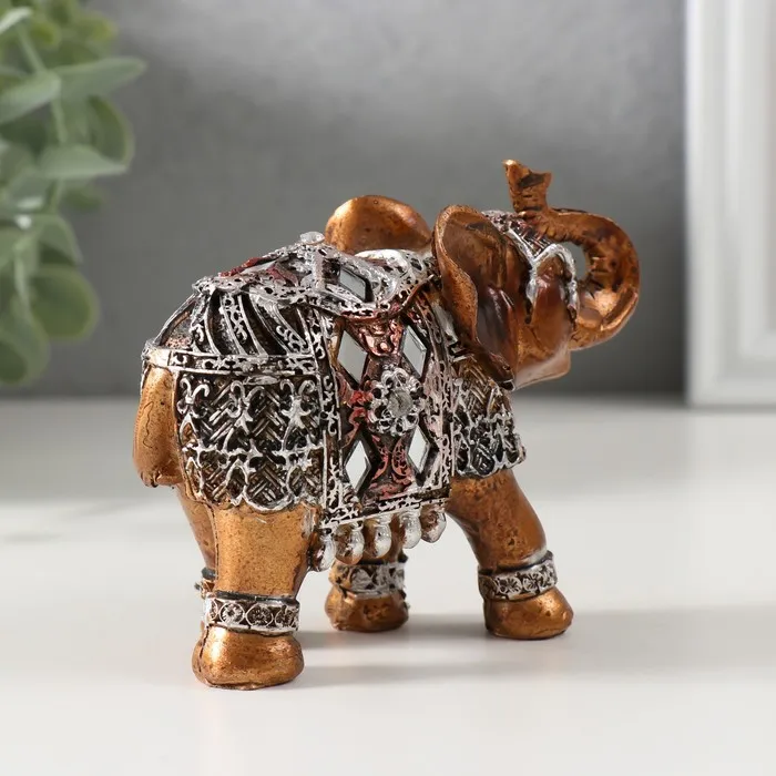 Фигурка полистоун «Бронзовый слон в серебристой попоне с зеркалами», 9.5×5×7 см — Характеристики