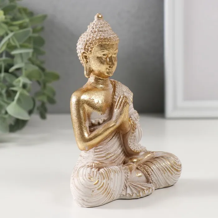 Эта изящная фигурка привносит в пространство ноту гармонии и духовной сосредоточенности. Выполненная из прочного полистоуна, она изображает классический образ в белоснежном одеянии с золотистыми акцентами, что создает эффект благородного сияния.