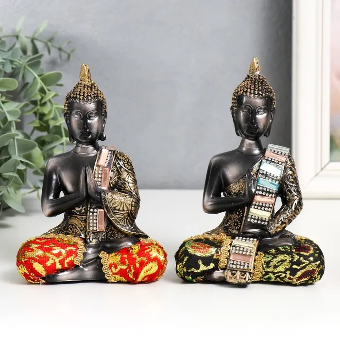 Фигурка полистоун «Будда в цветной тоге с узорами. Сидит», 10×6.2×15.5 см, МИКС — Характеристики