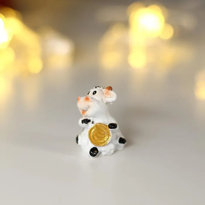 Маленький талисман больших возможностей! Фигурка «Бычок Зефир с деньгами» — это забавный символ процветания и удачи, выполненный из качественного полистоуна. Миниатюрный размер (4 см) делает его идеальным аксессуаром для рабочего стола, полки с коллекцией или подарка близким.